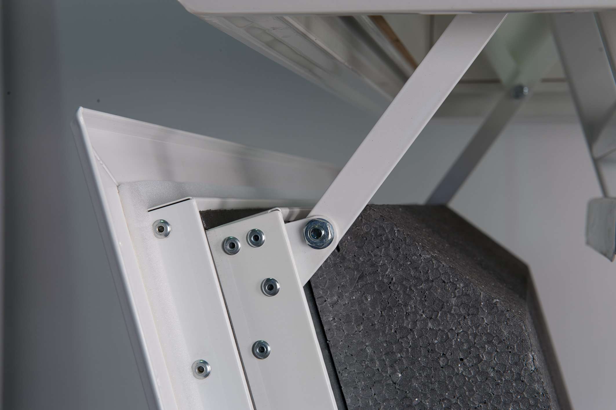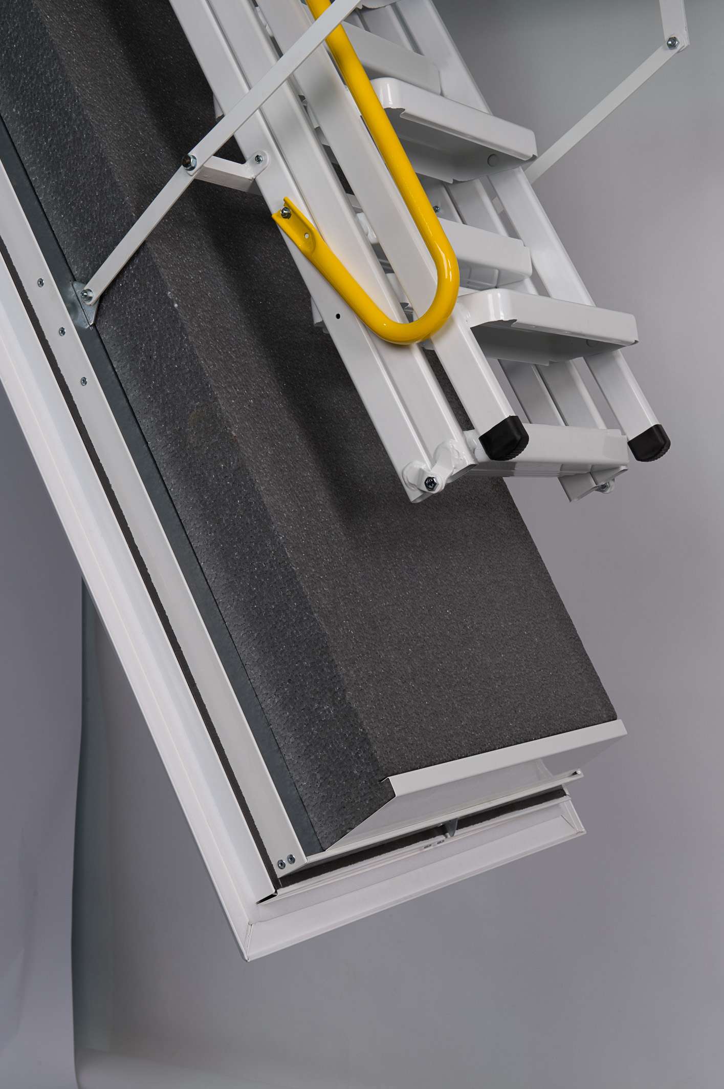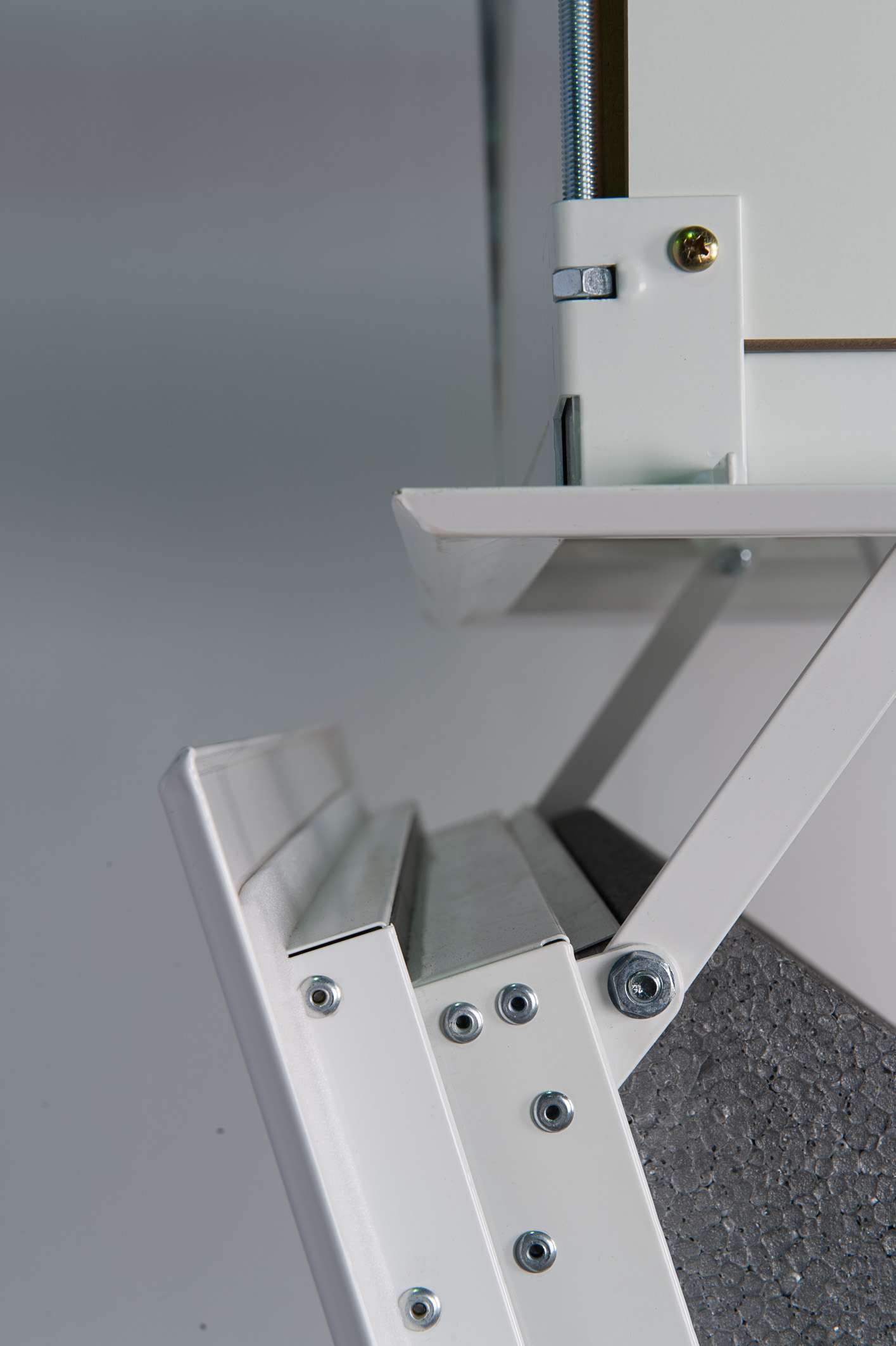 Die Metalltreppen von Minka bestehen aus hochwertigem, pulverbeschichtetem Stahl. Damit ist auch die Arctic Fire Bodentreppe äußerst resistent gegen Kratzer und sonstige Schäden. Für Sicherheit und Komfort beim Auf- und Absteigen der Dachbodentreppe sorgen breite Metallstufen und der Handlauf aus hochqualitativem Stahl. So haben Sie lange Freude an Ihrer Dachbodentreppe.