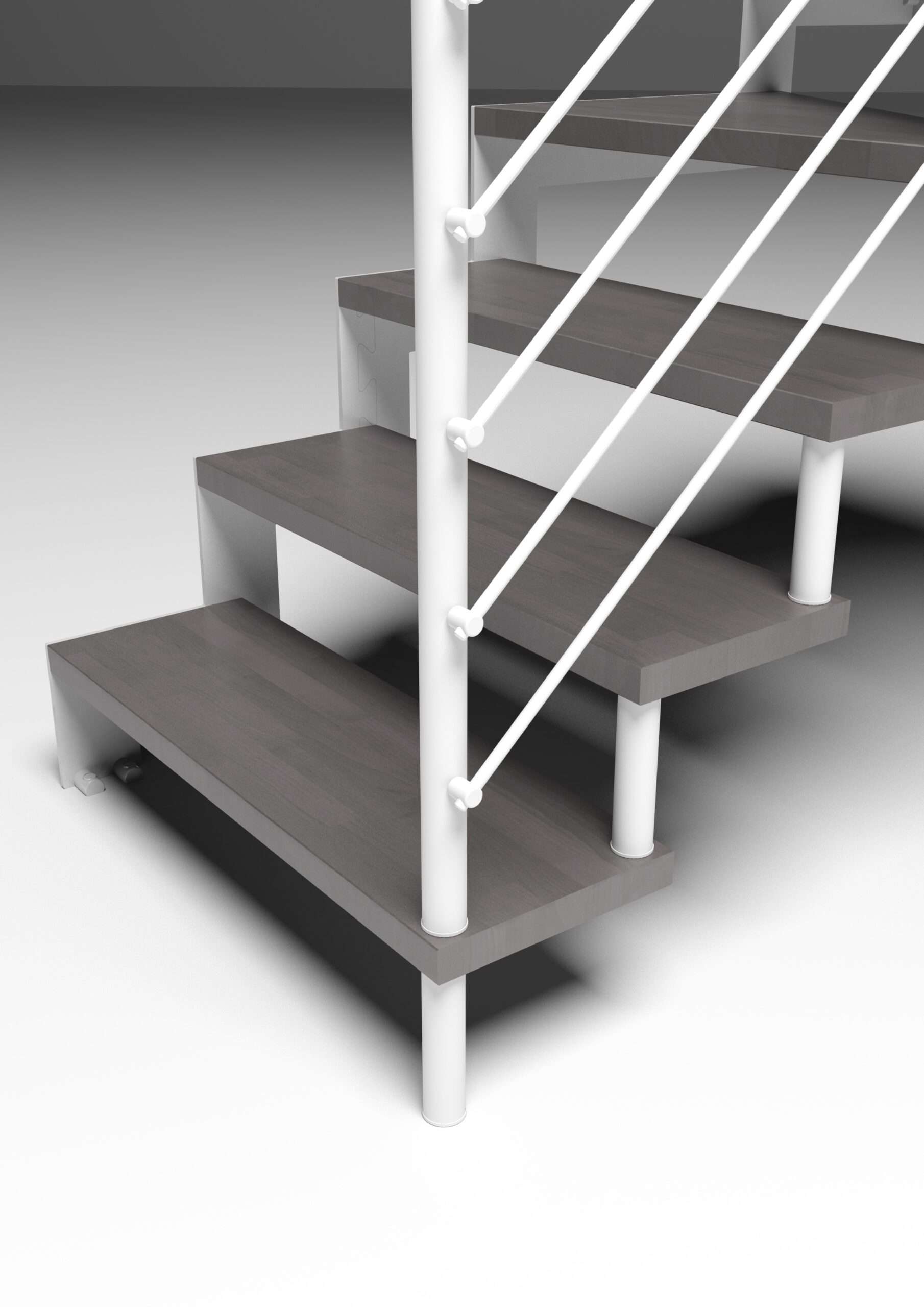 Sie ist ideal für den Innenbereich geeignet und fügt sich dank ihrer klaren Linienführung harmonisch in jeden Raum ein. Alle Elemente der Treppe sowie die Farbgestaltung sind darauf ausgelegt, den einzigartigen Stil des Produkts zu unterstreichen.