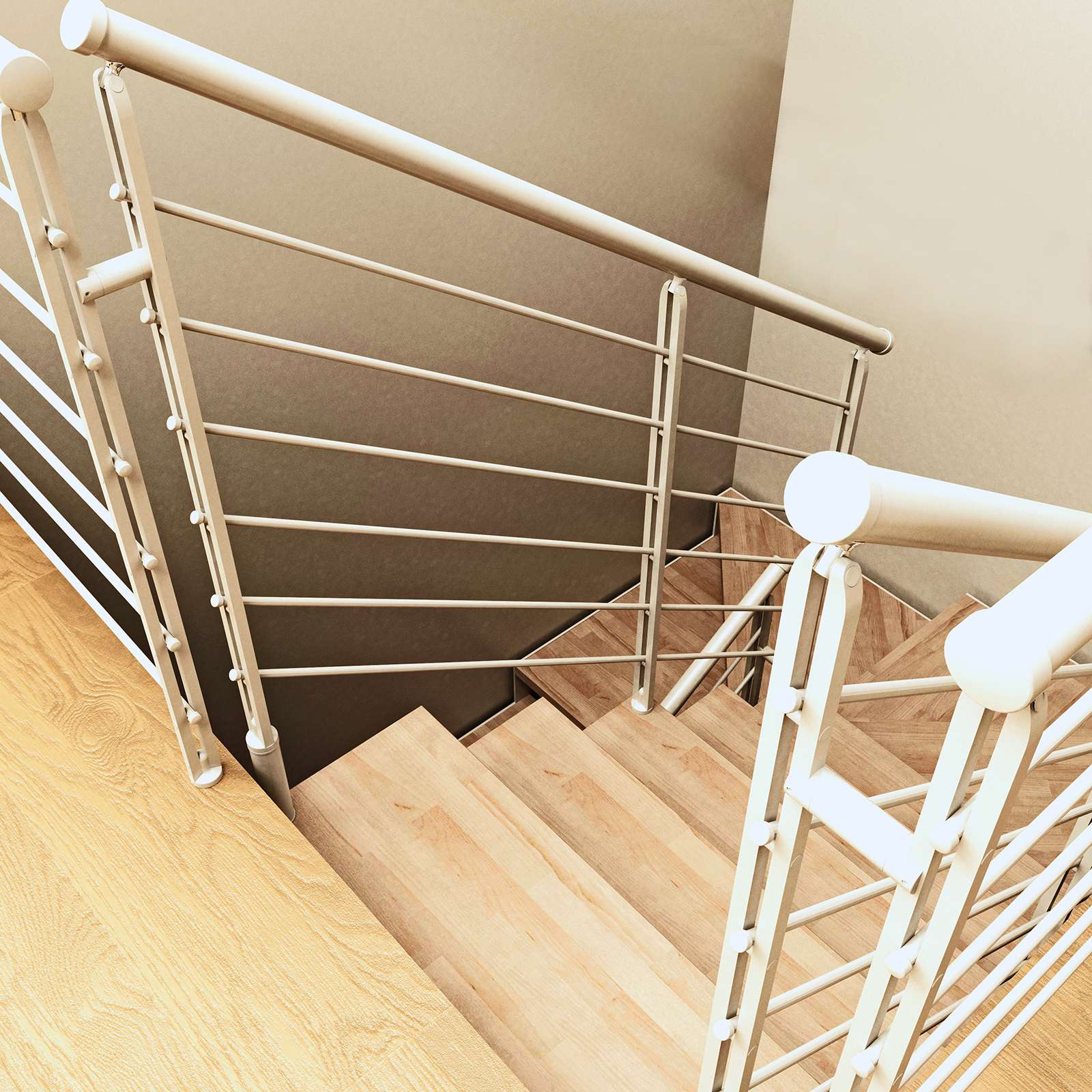 - Geländer aus Metallstäben, wahlweise mit Holz- oder Kunststoffhandlauf