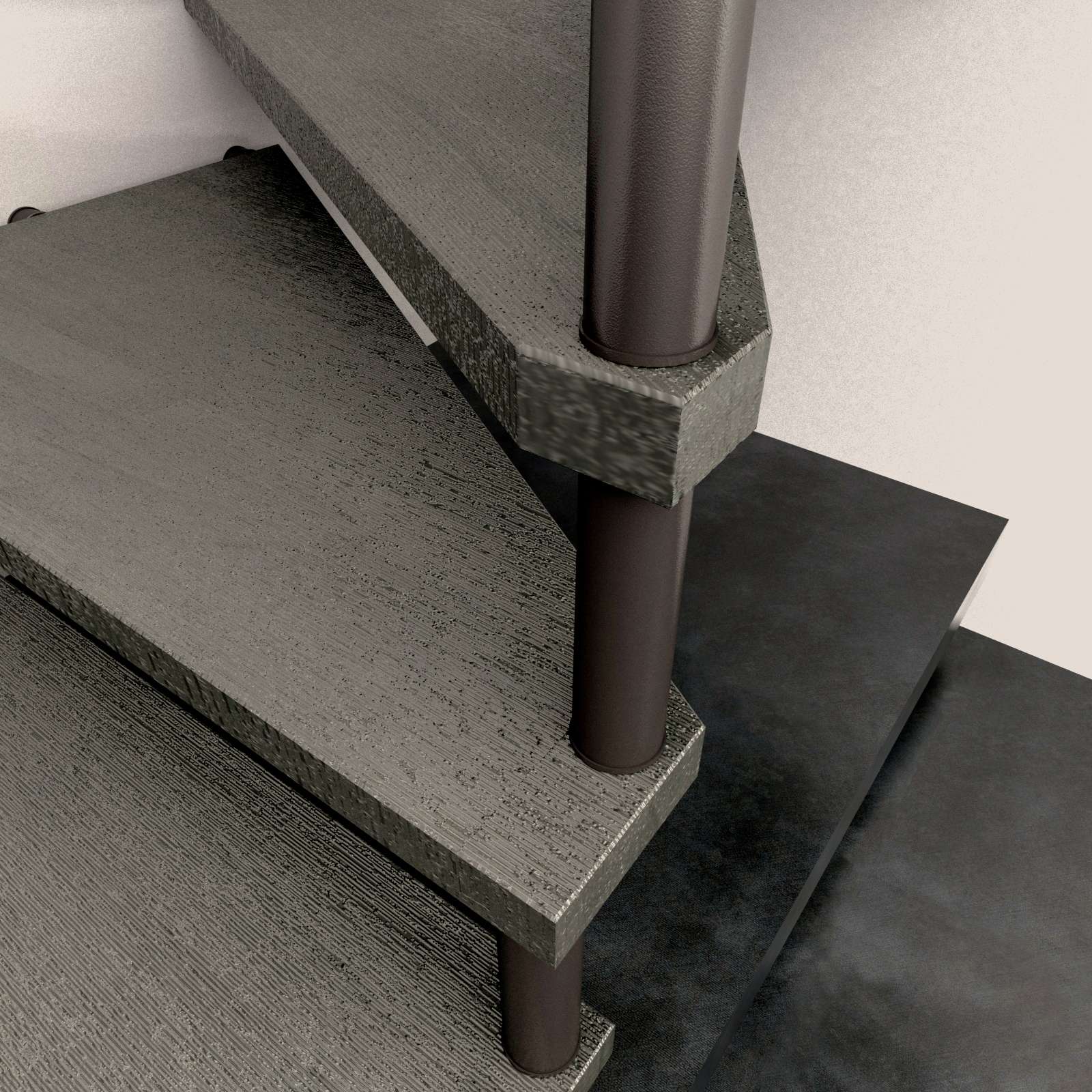 • Robuste Konstruktion: Stufen werden direkt an den Außenwänden des Treppenlochs mittels Bolzen und Metallabstandshaltern befestigt.