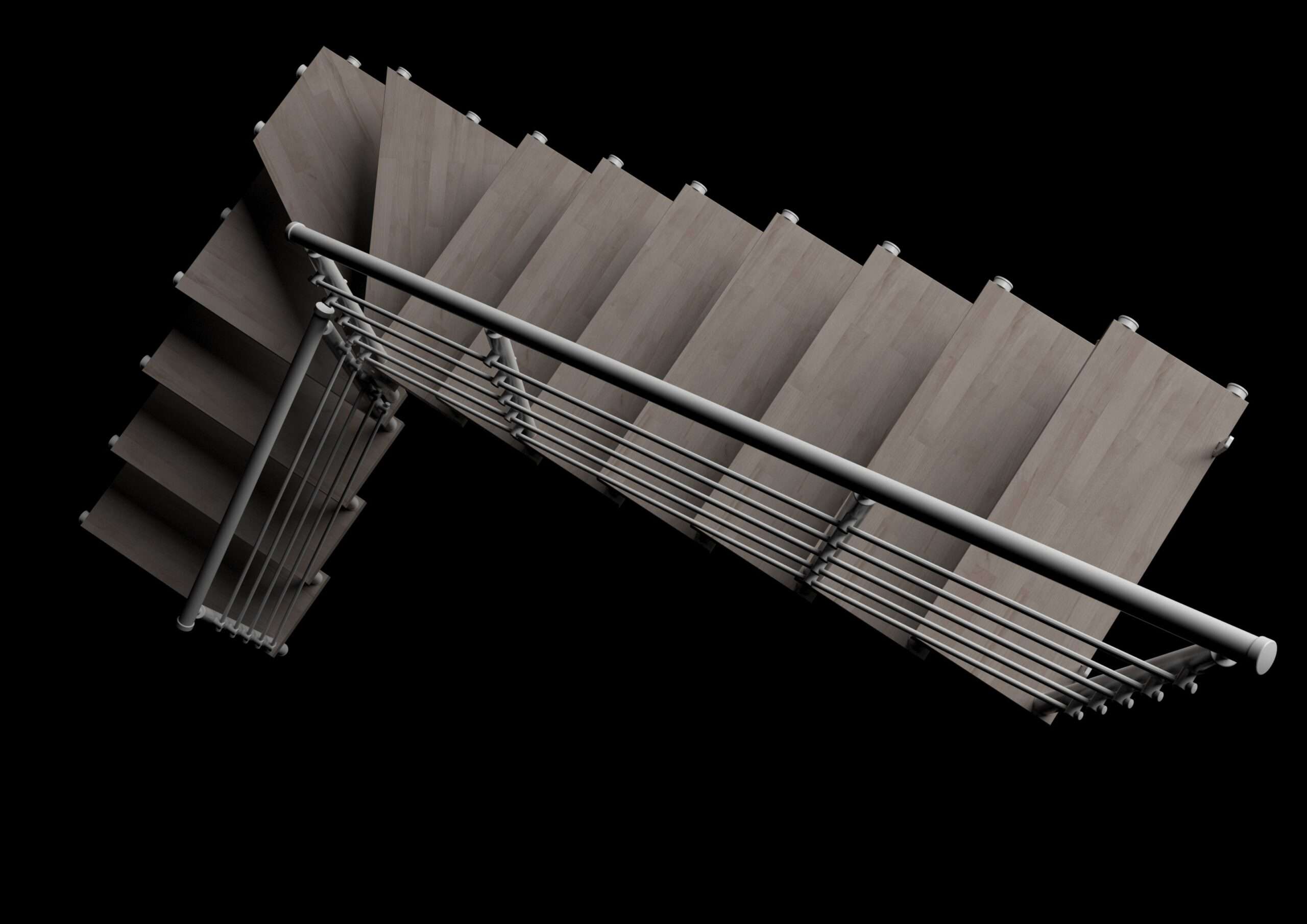 • Hochwertige Materialien: 40 mm starke Buchenholzstufen mit abgeschrägten Kanten, kombiniert mit Metallgeländer und fünf parallelen Drähten.