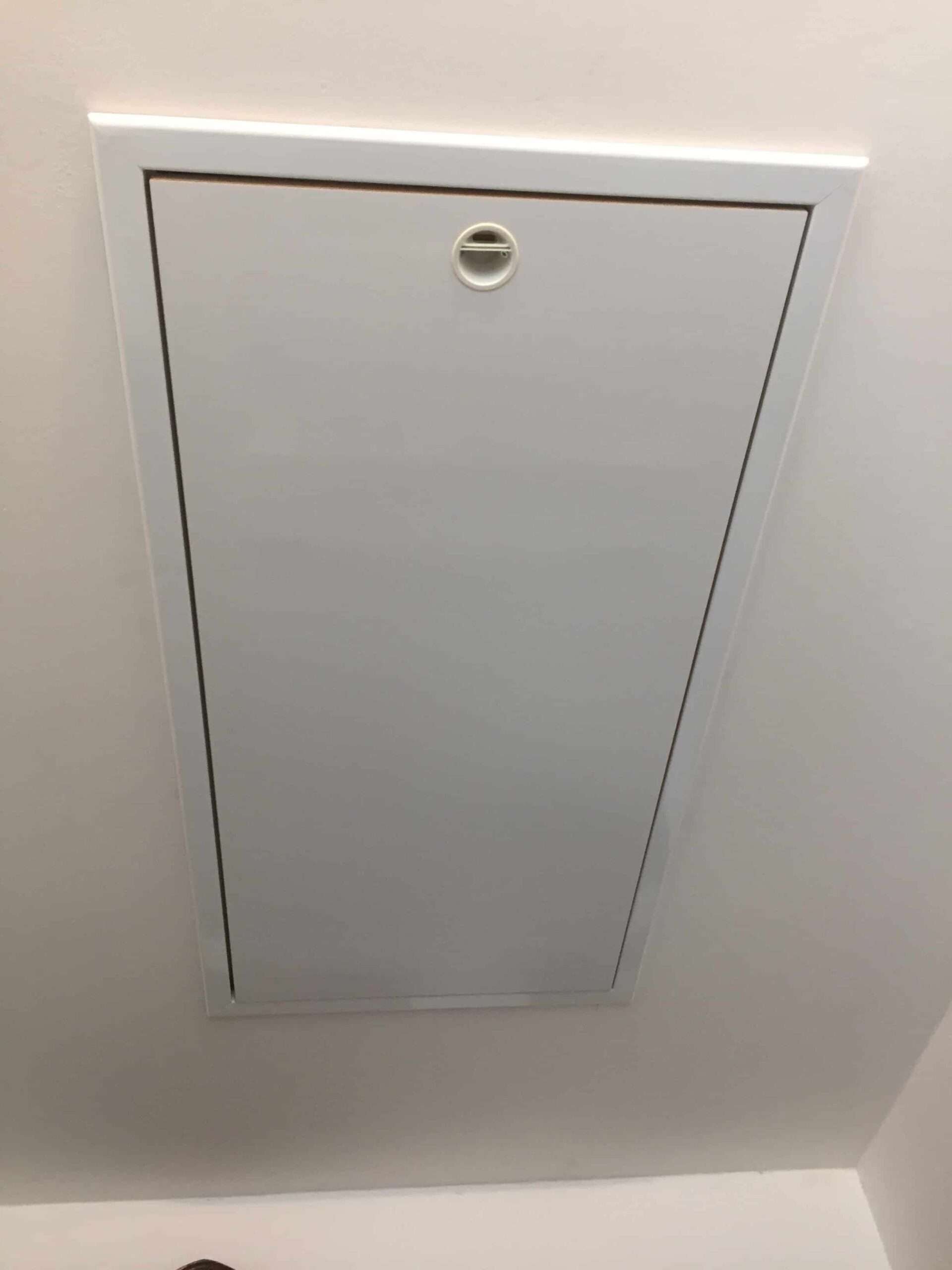 Die weiße Stahlzarge und der weiße Unterdeckel fügen sich optisch unauffällig ins Raumbild ein und sorgen für einen schönen Abschluss an der Decke.