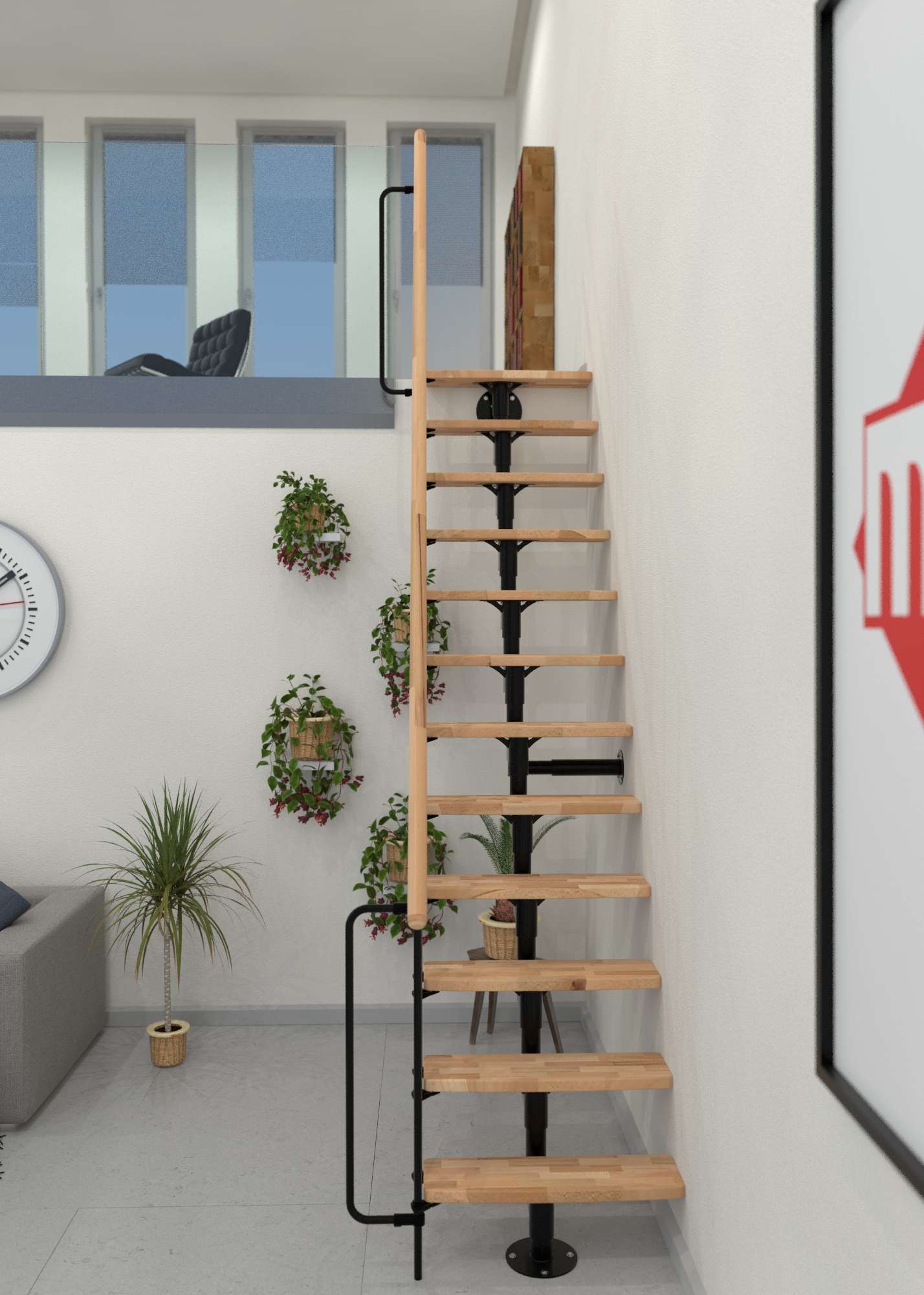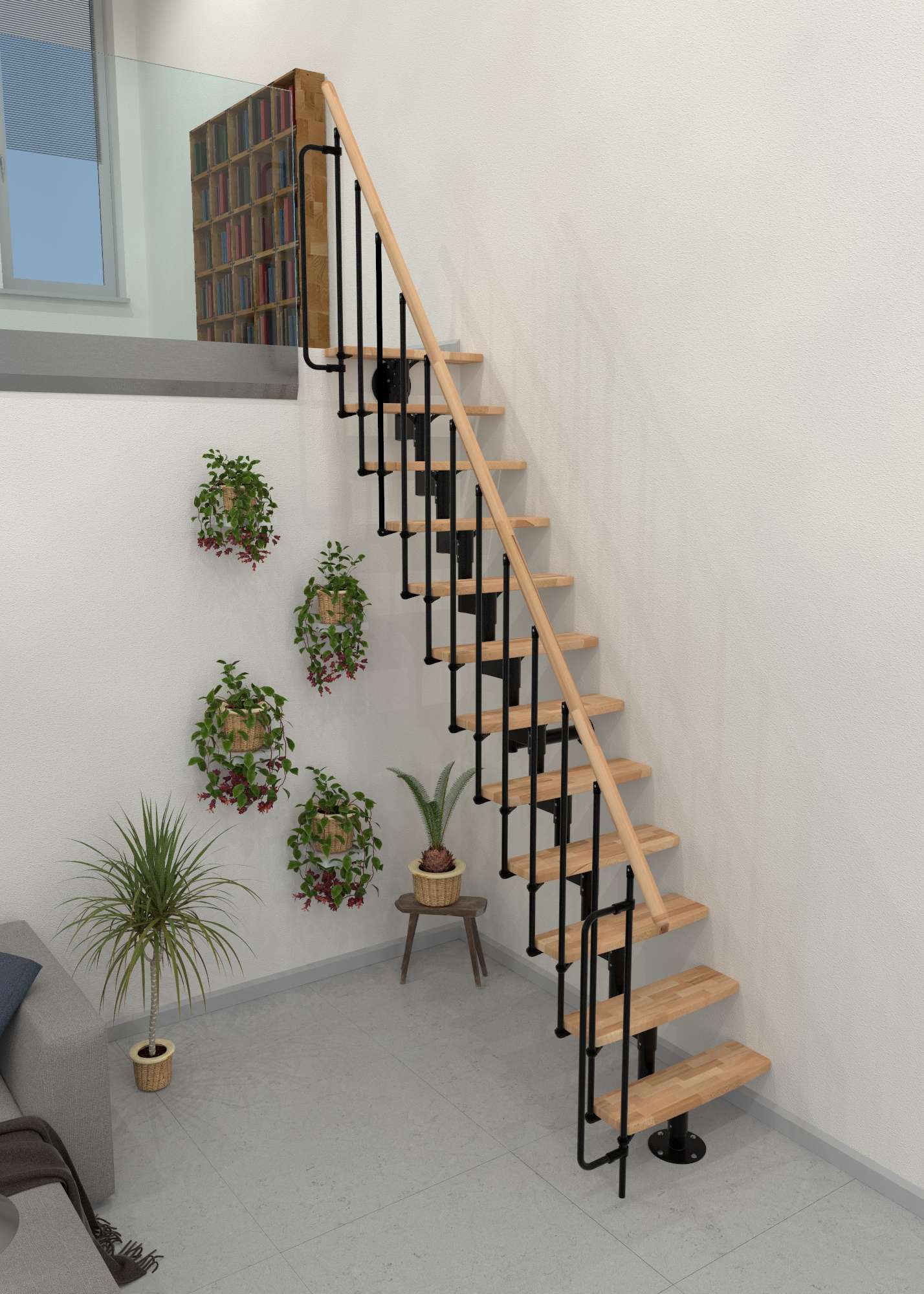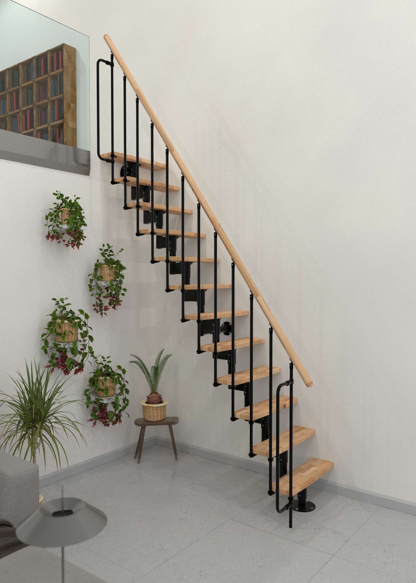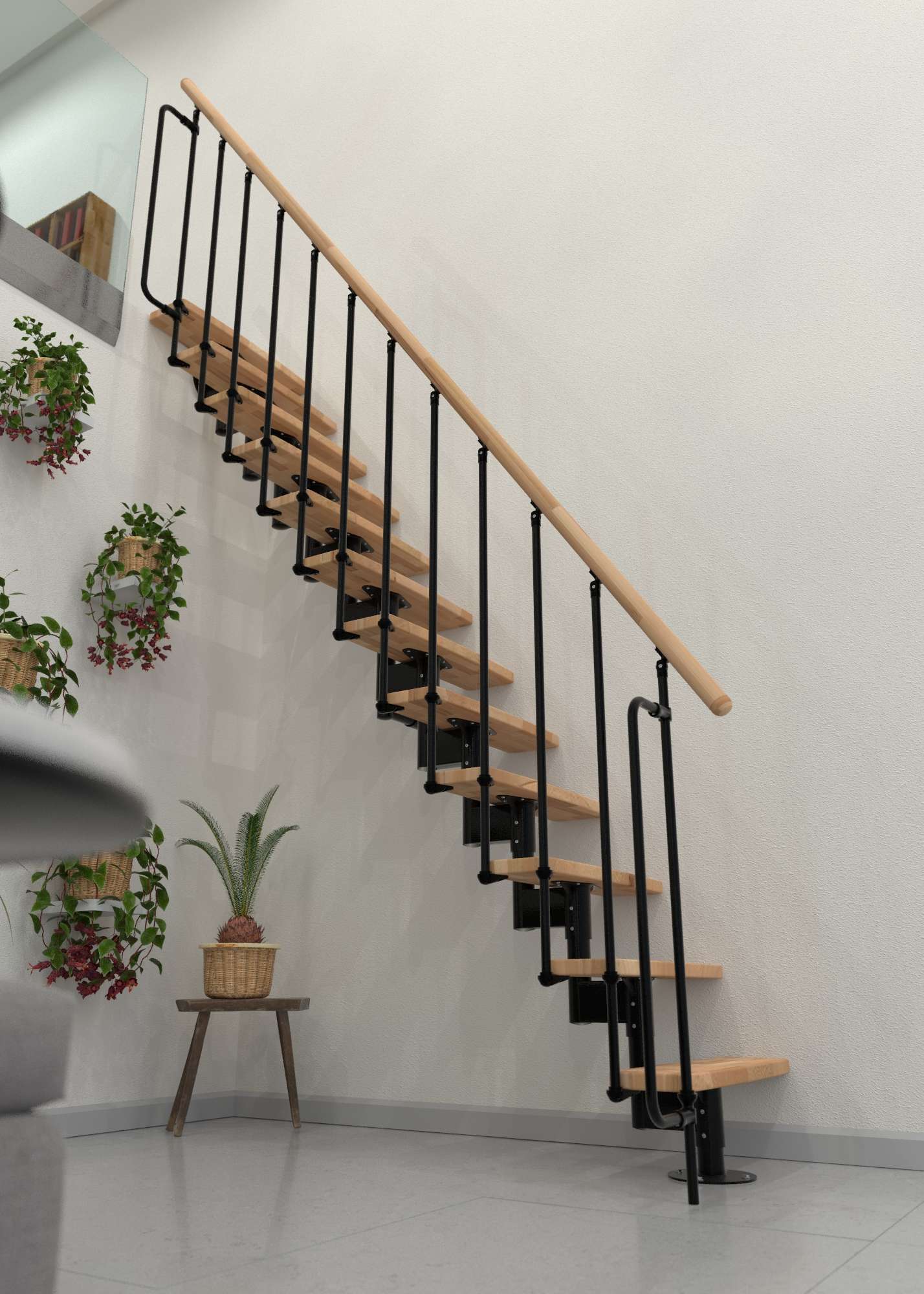 • Praktische Raumspartreppe mit geradlinigem Look