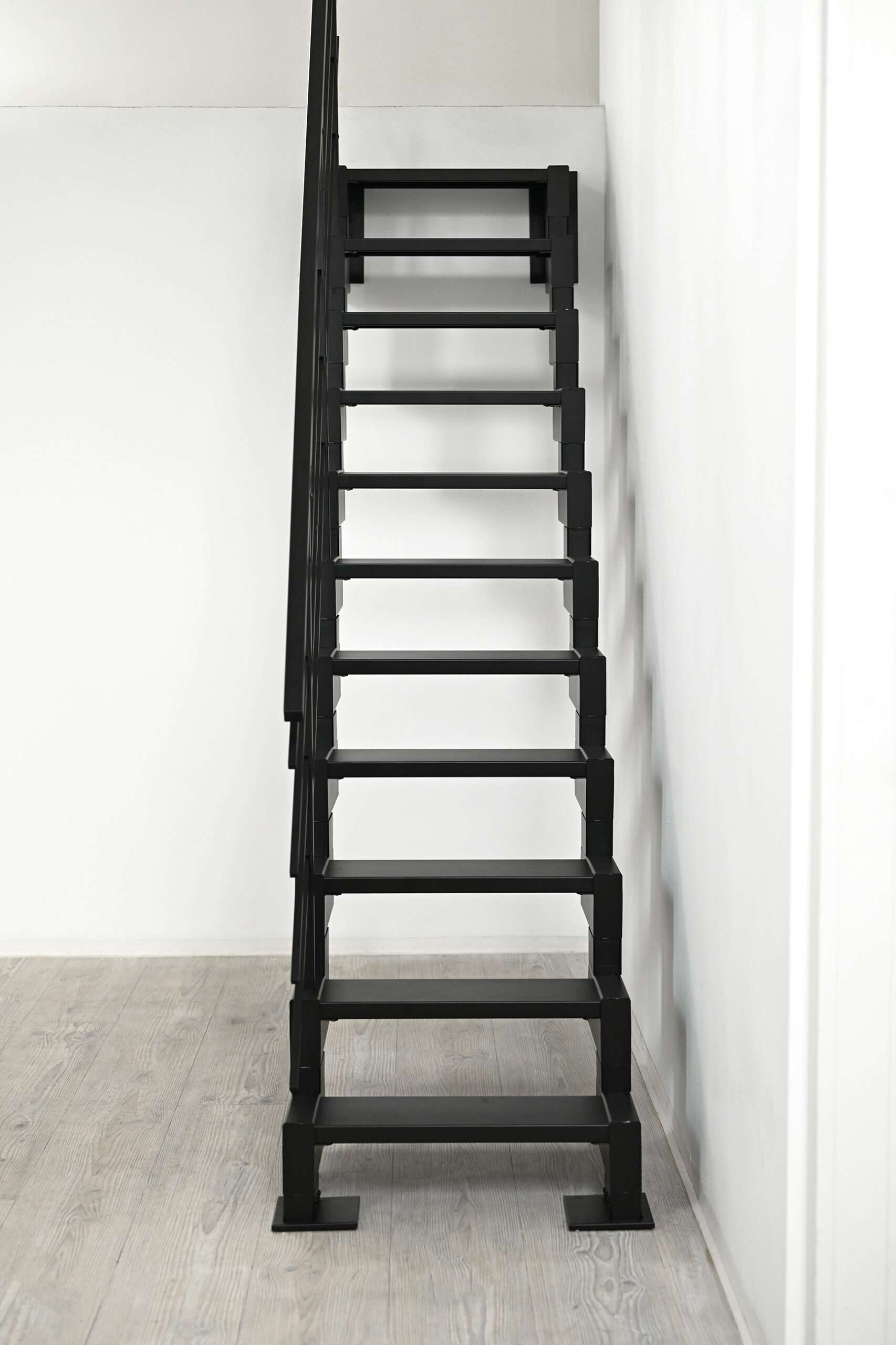 Die pulverbeschichtete Oberfläche sorgt nicht nur für eine edle Optik, sondern macht die Treppe auch besonders robust und langlebig – perfekt für den täglichen Gebrauch.