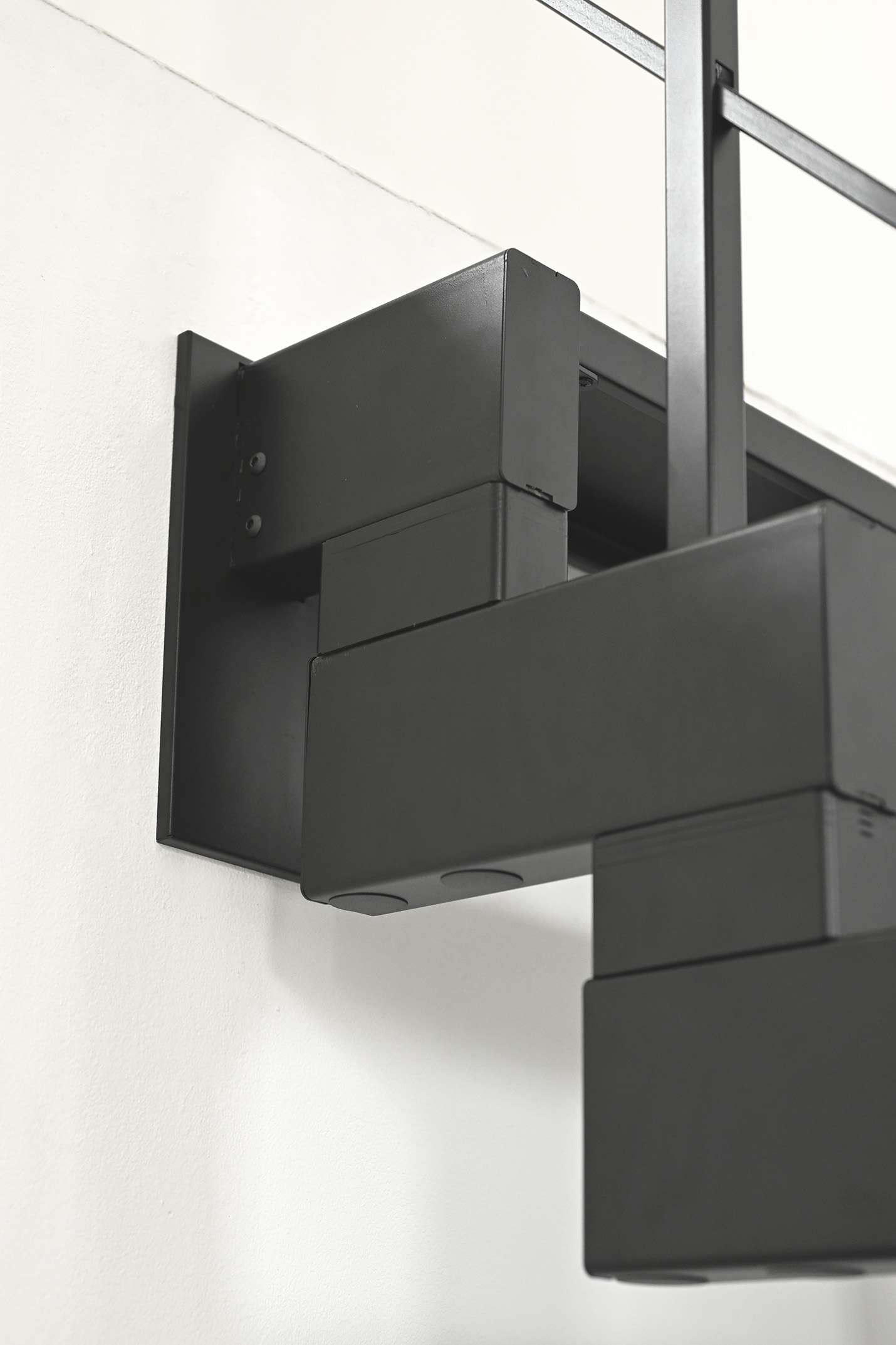 Dank der flexiblen Höhen- und Tiefenanpassung der seitlichen Trägerelemente lässt sich die Modulario Mini optimal an die Gegebenheiten Ihres Raumes anpassen. Ob für kleine Wohnungen oder großzügige Maisonette-Ebenen – diese Treppe bietet maximale Vielseitigkeit und Komfort.
