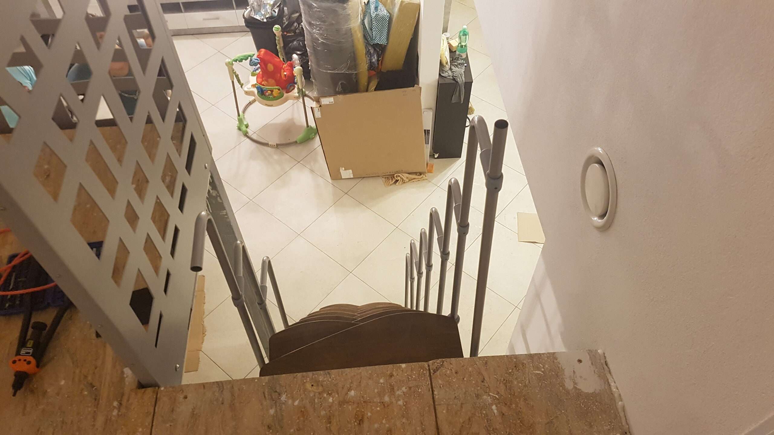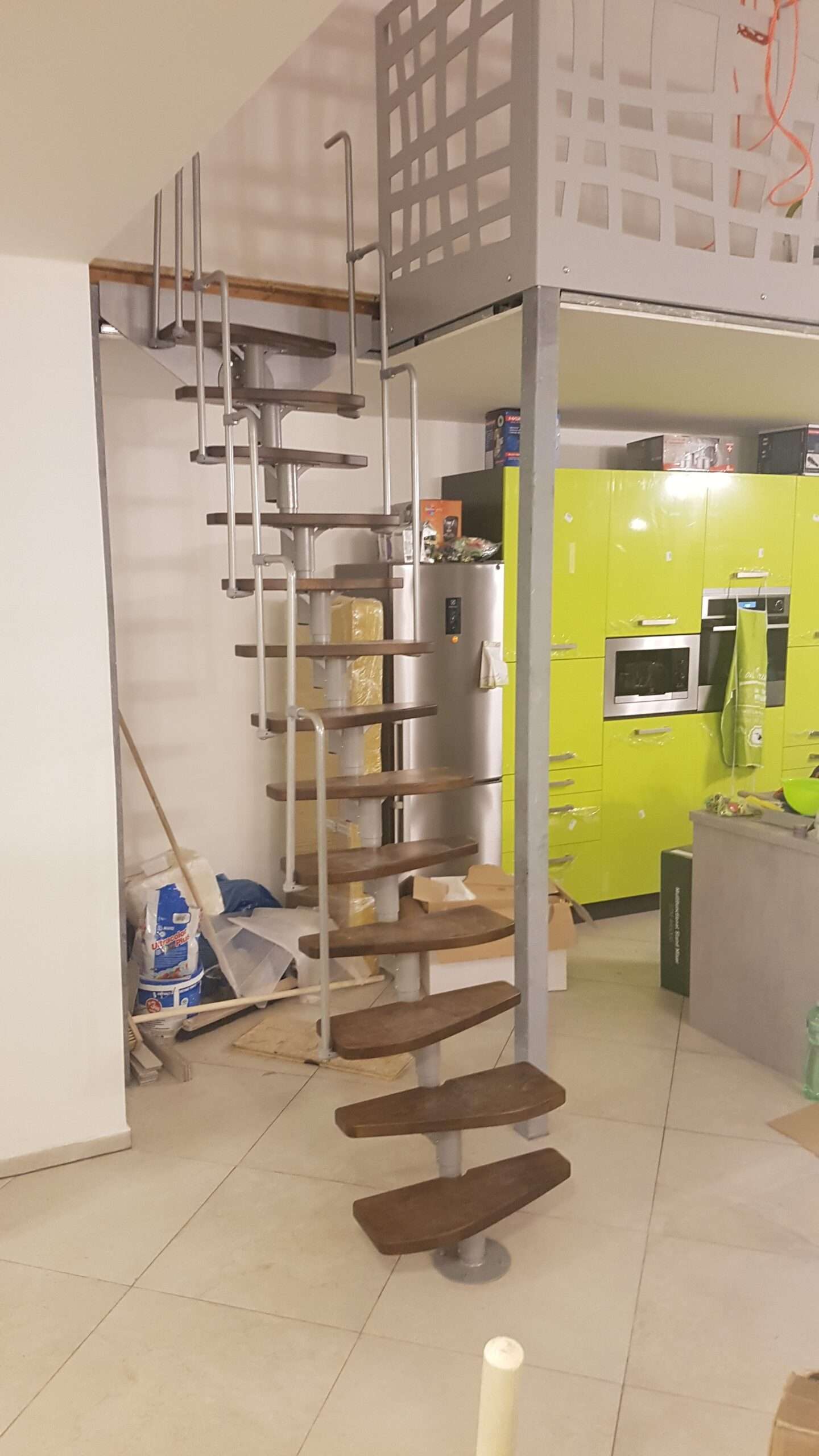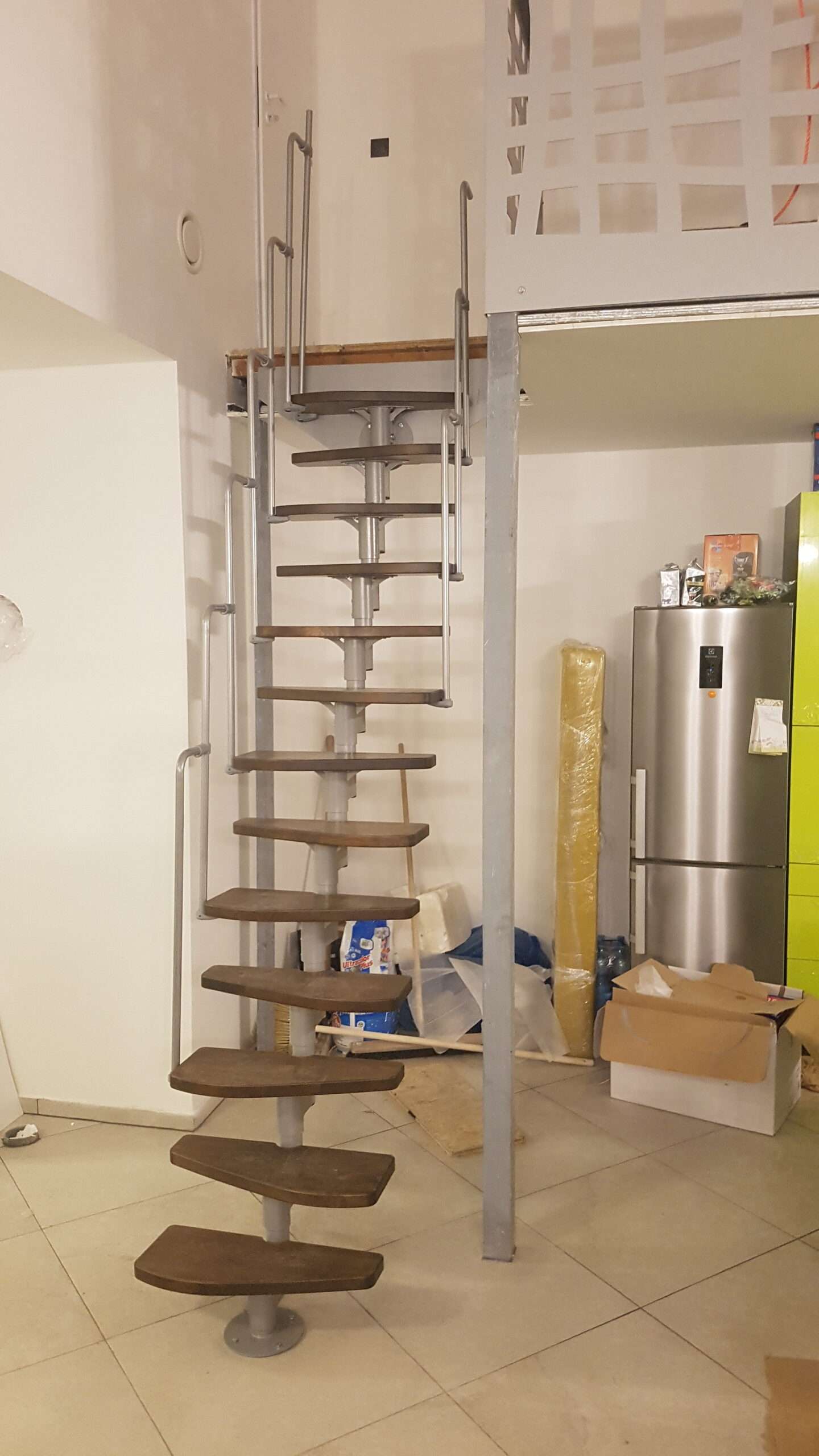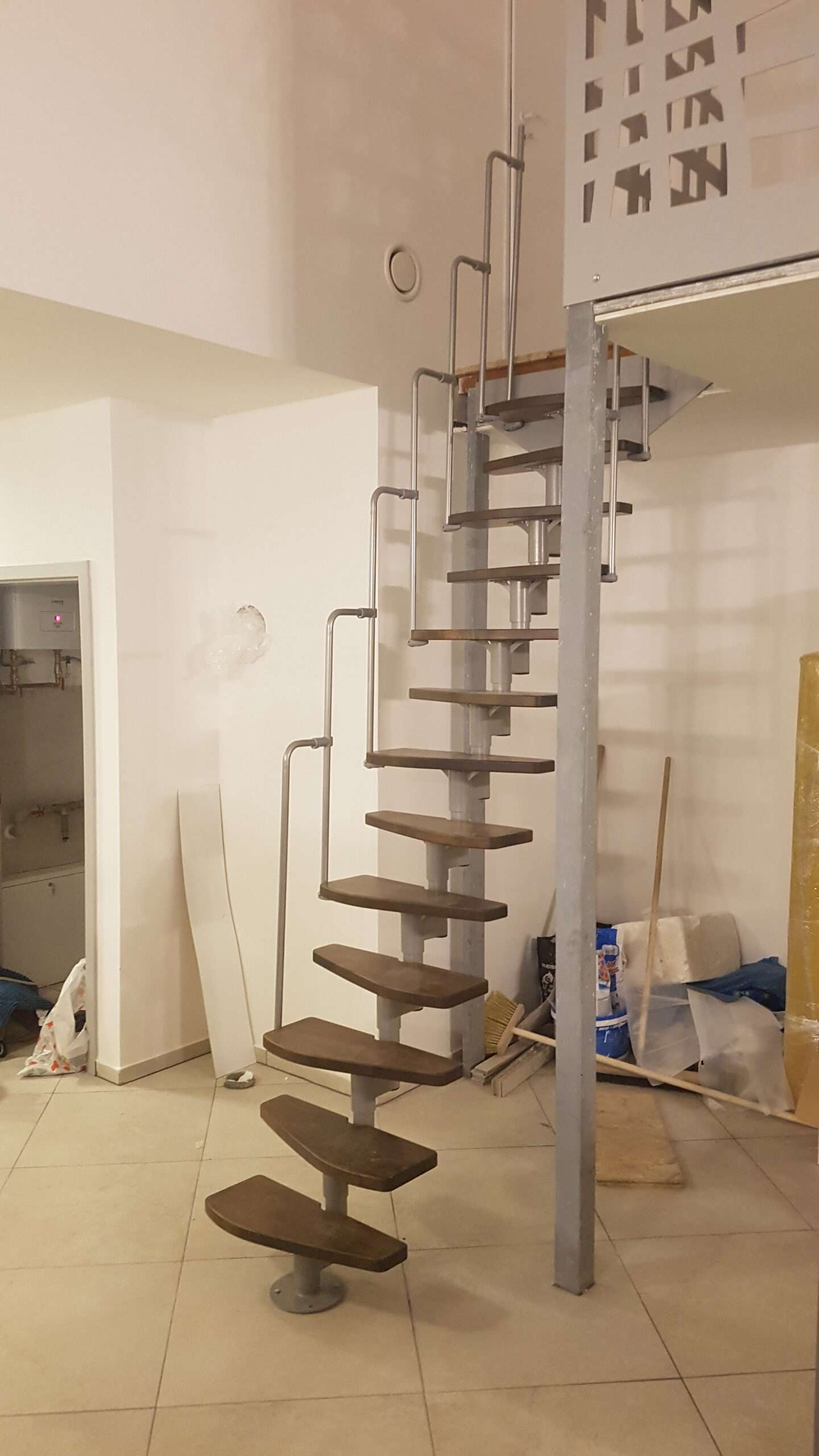 - Raumspartreppe mit elegant abgerundeten Holzstufen und geradem Metallgeländer