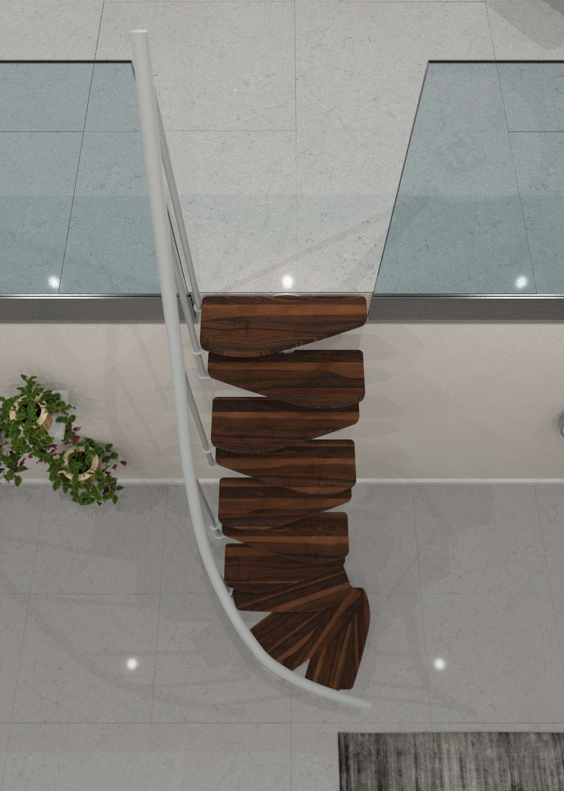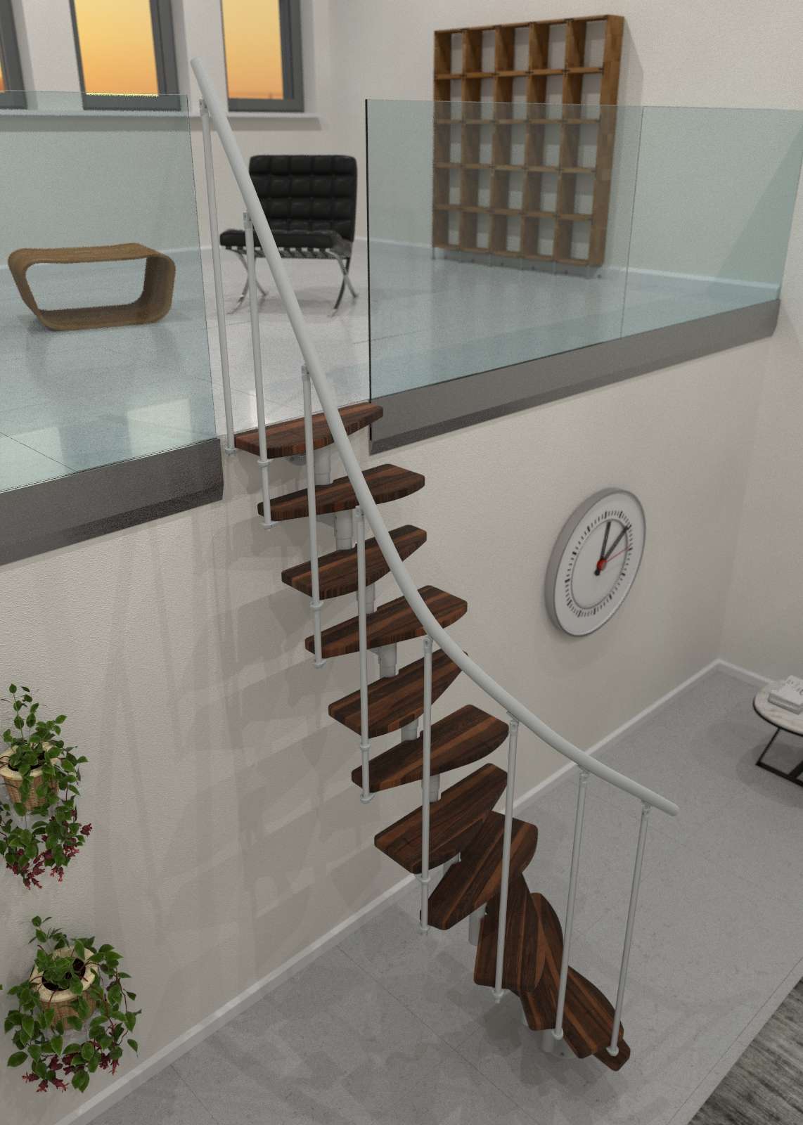 Die Kombination aus runden und geraden Linien macht die Monte Carlo zu einer eleganten und gleichzeitig schlichten Raumspartreppe. Mit ihren abgerundeten Holzstufen benötigt die Monte Carlo besonders wenig Platz und passt somit in fast jeden Wohnraum.