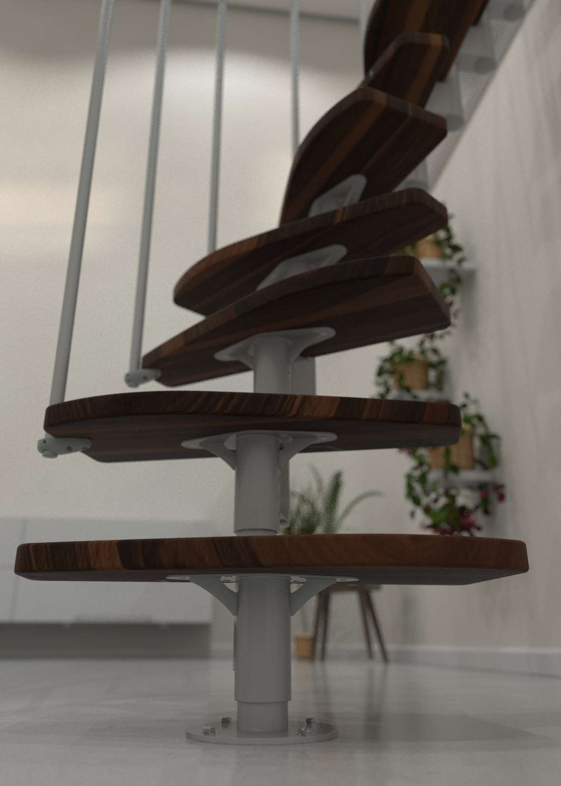 Die Stufen der Raumspartreppe Monte Carlo bestehen aus hochwertigem Buchenholz. Je nach Wunsch liefern wir diese in natürlicher Optik oder auf eine dunklere Walnussoptik gebeizt. Die Metallteile und der Handlauf sind in den Farben Schwarz, Grau und Weiß erhältlich. So können Sie Ihre Treppe ganz nach den eigenen Vorstellungen personalisieren.