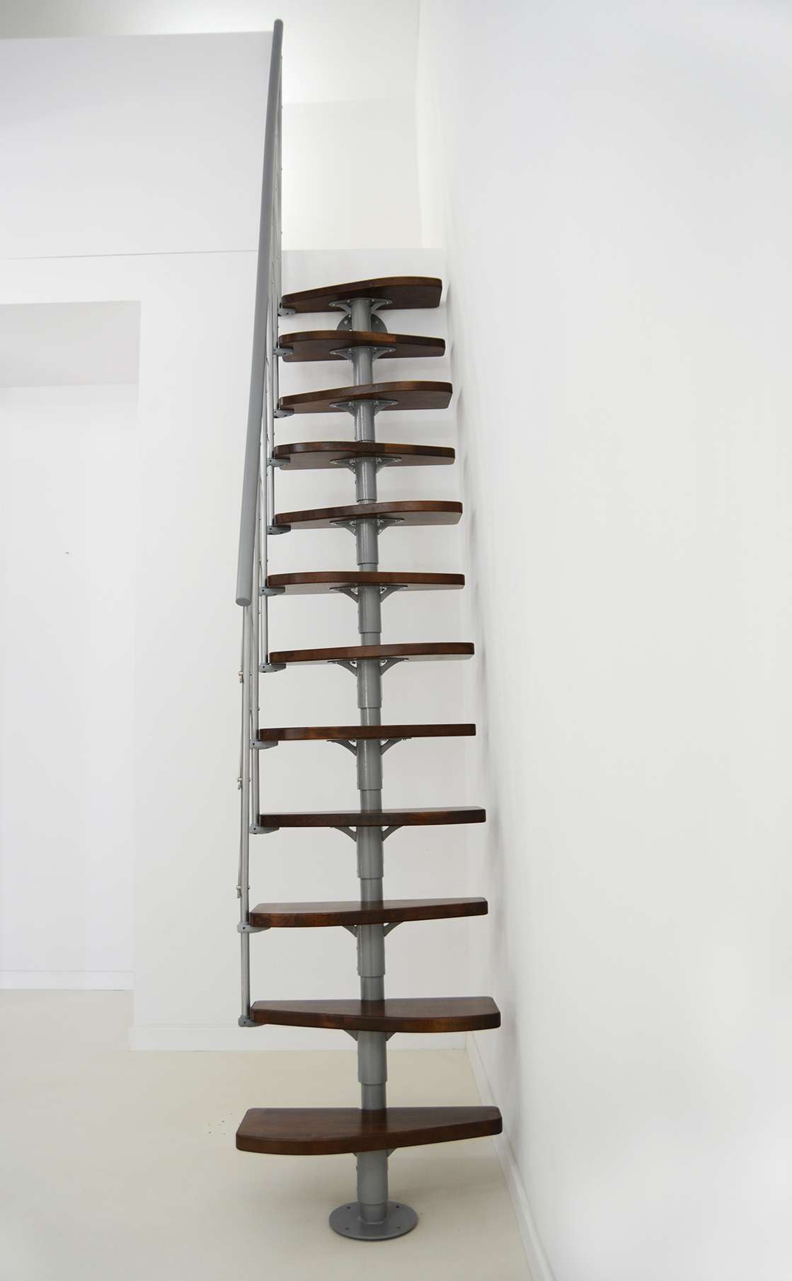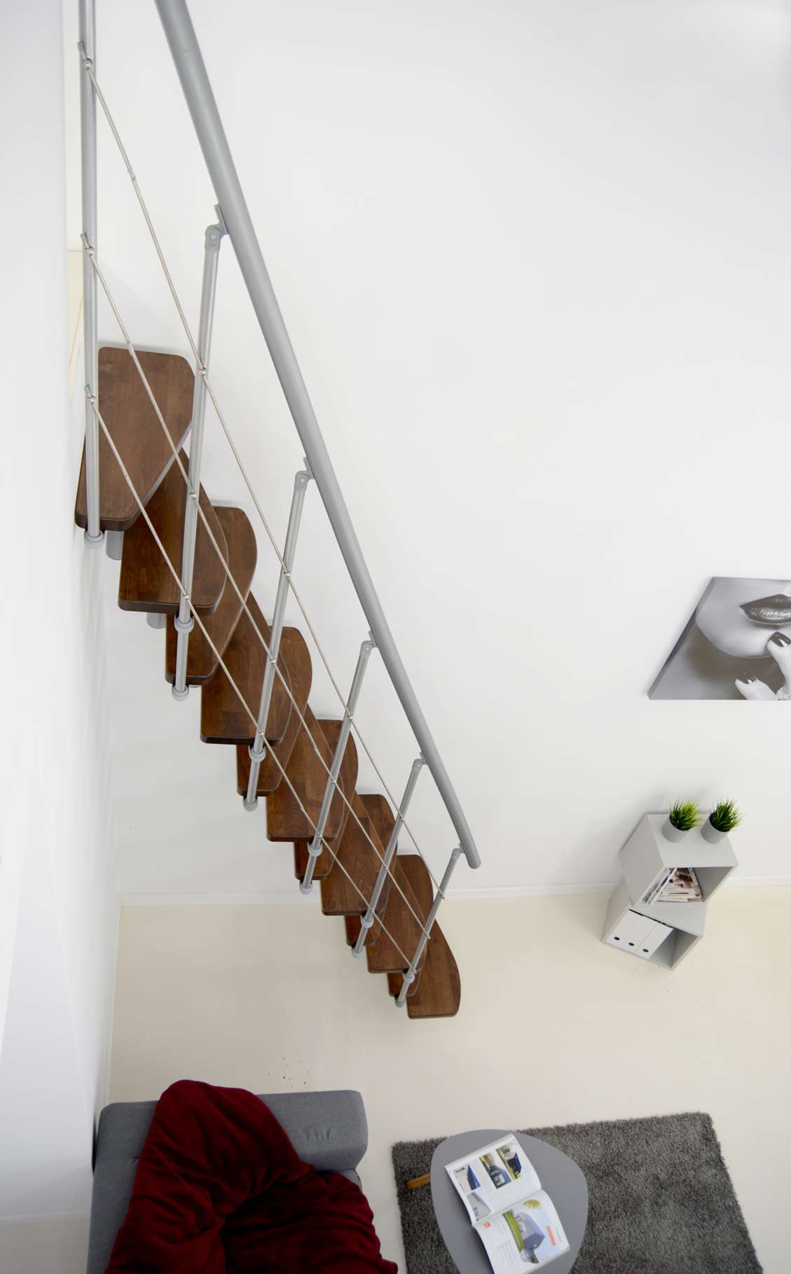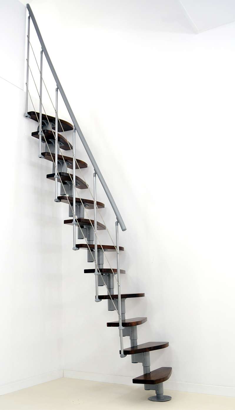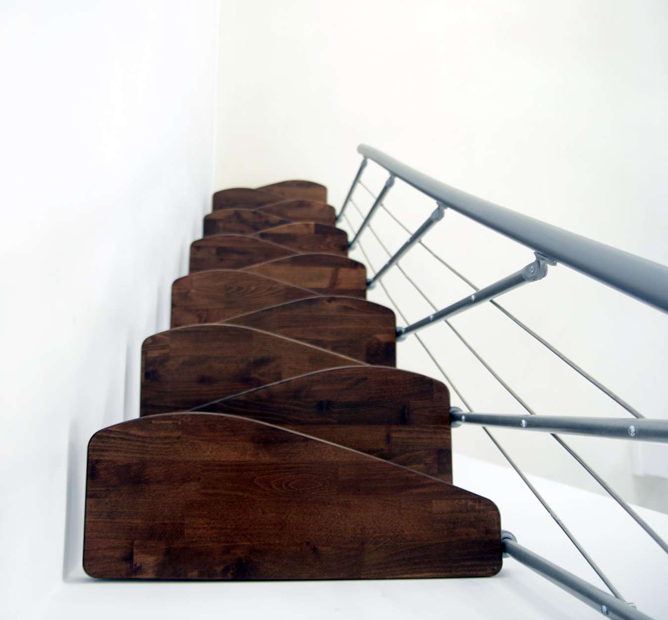 • Geschwungene Stufen aus Buche oder in Walnussoptik