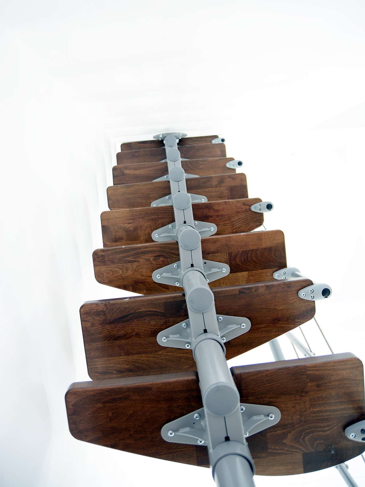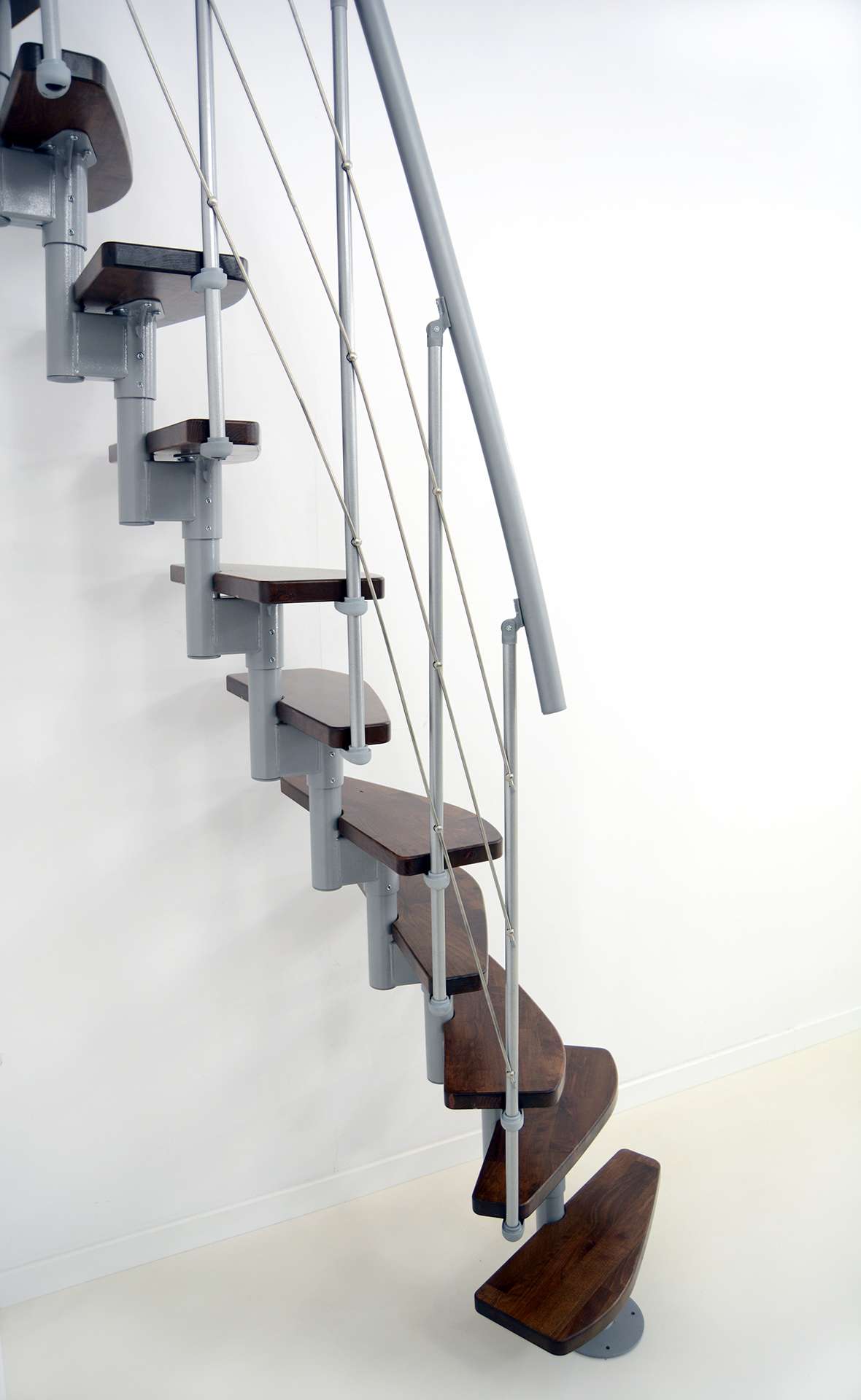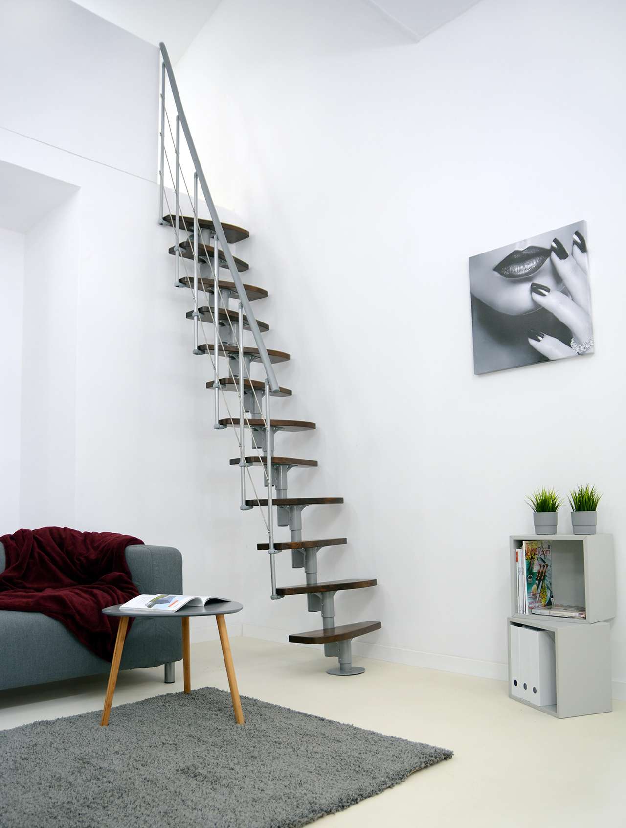 • Geschwungene Stufen aus Buche oder in Walnussoptik