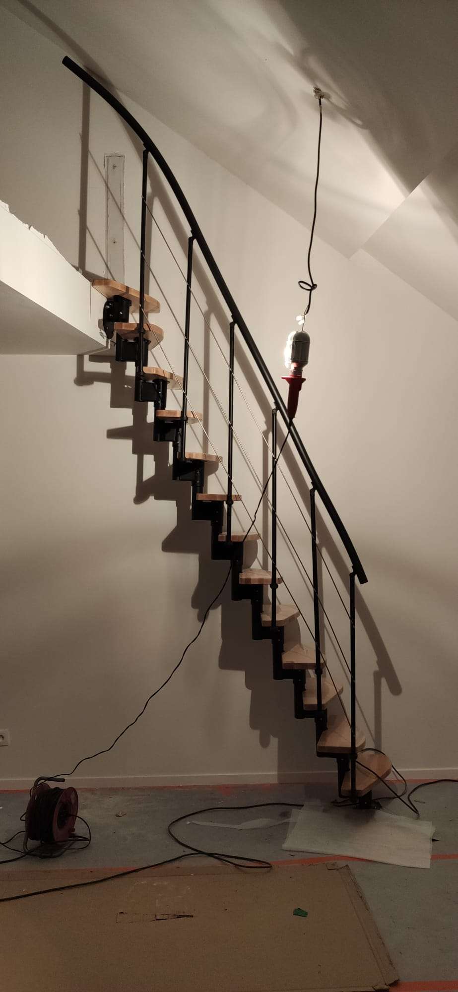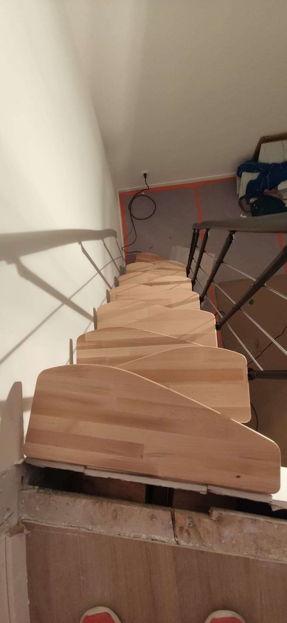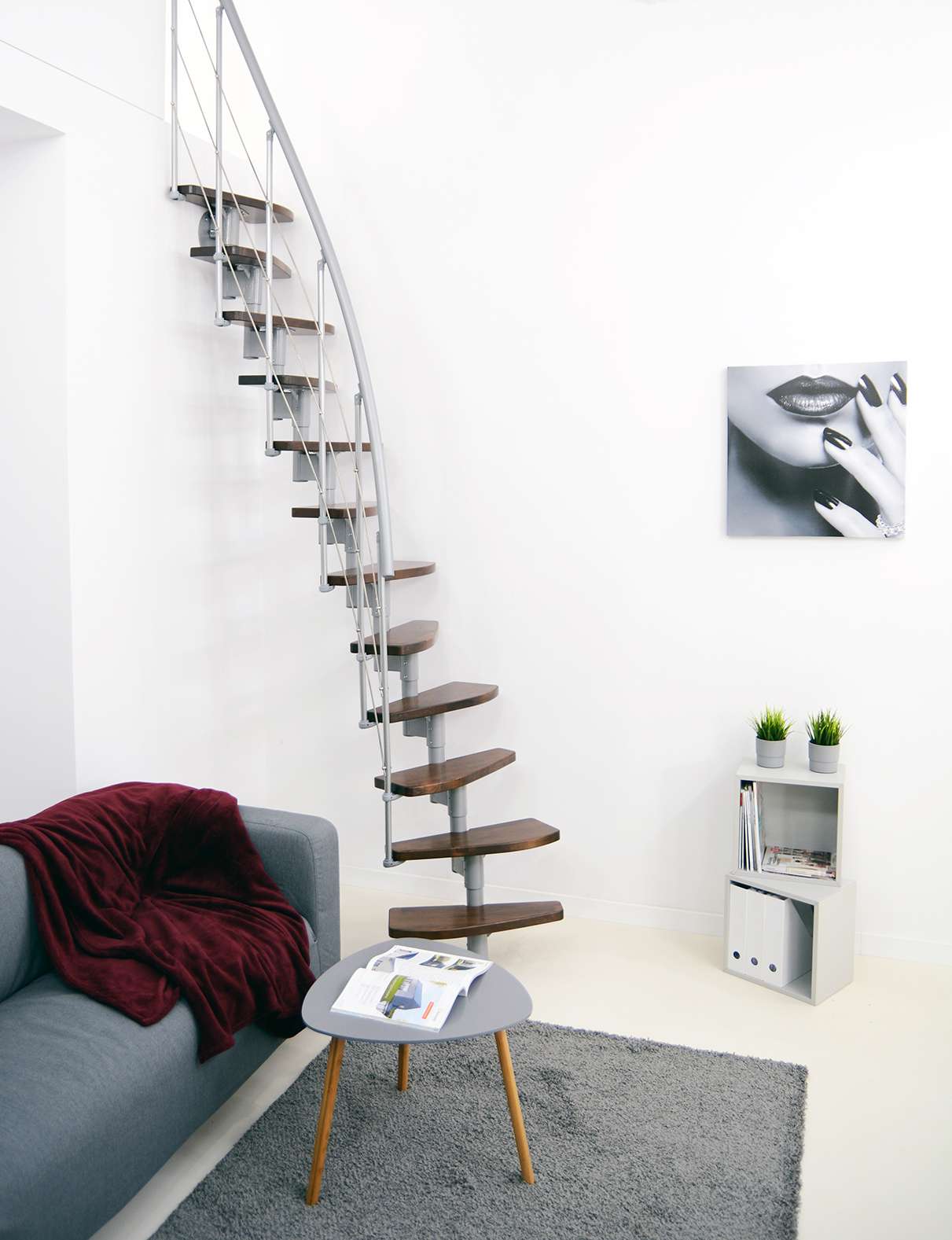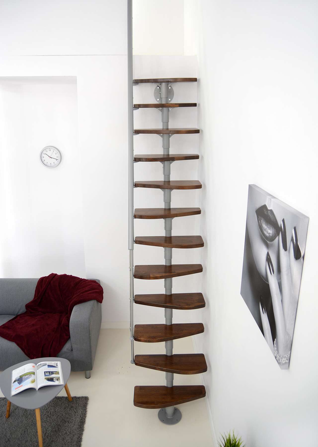 • Geschwungene Stufen aus Buche oder in Walnussoptik