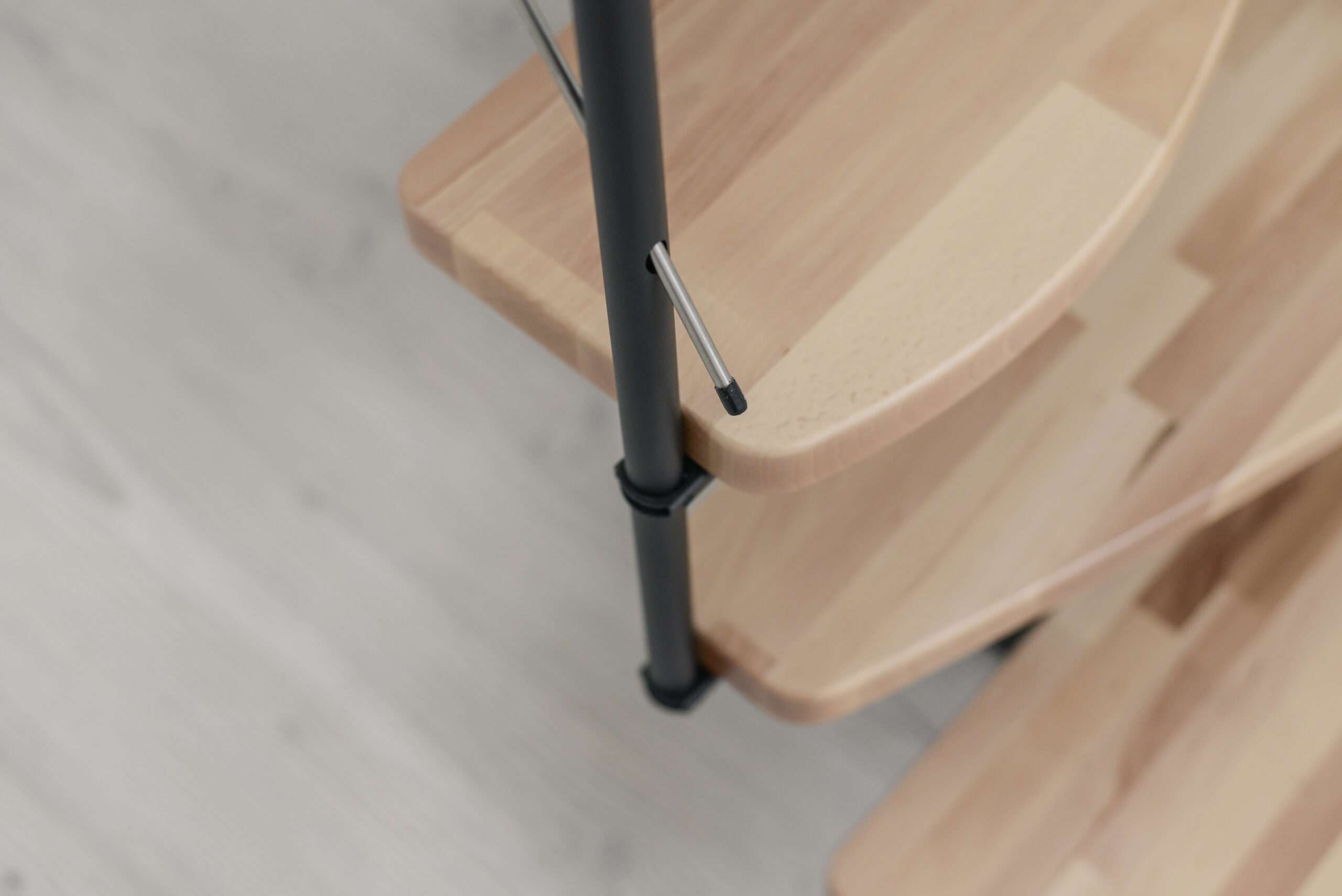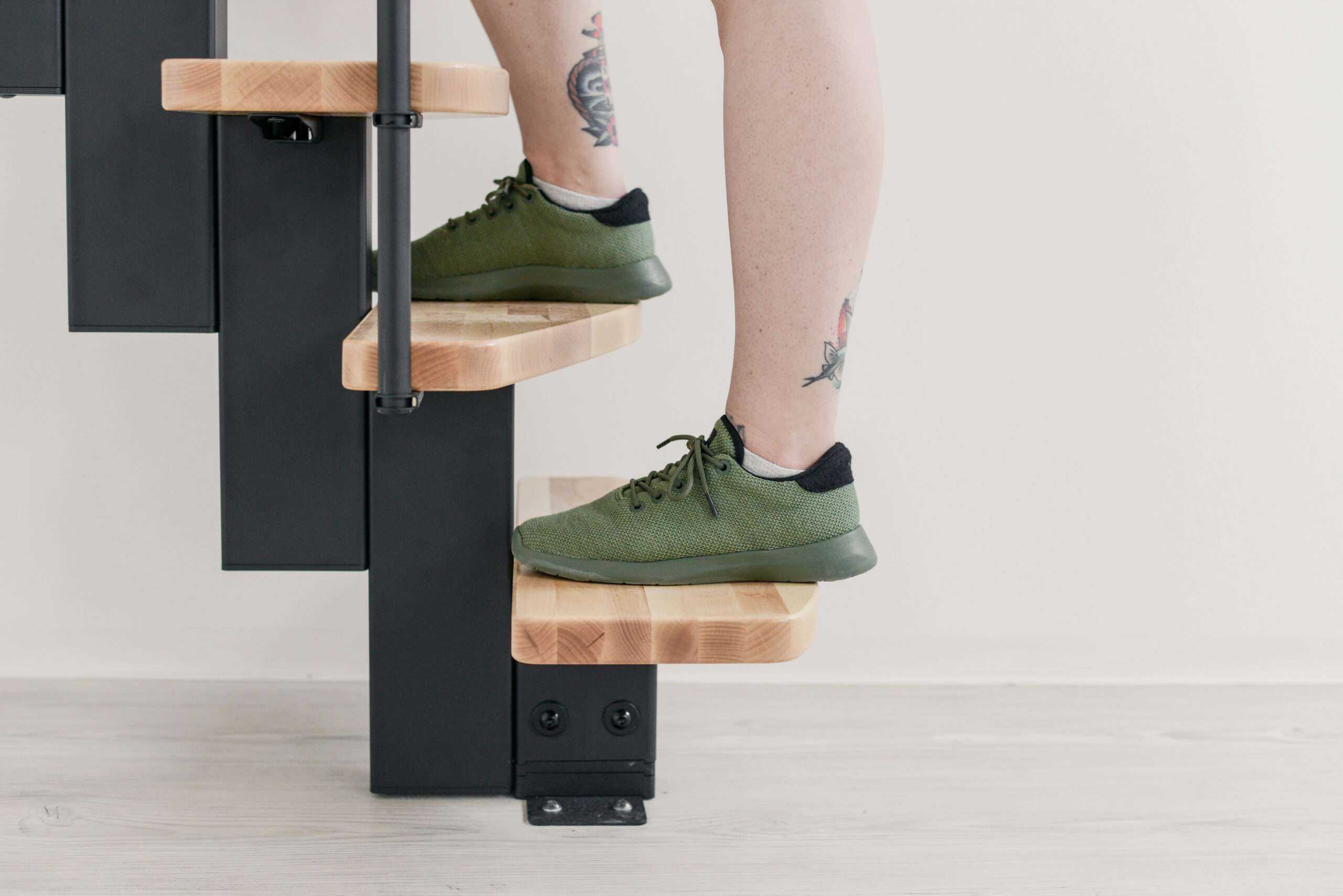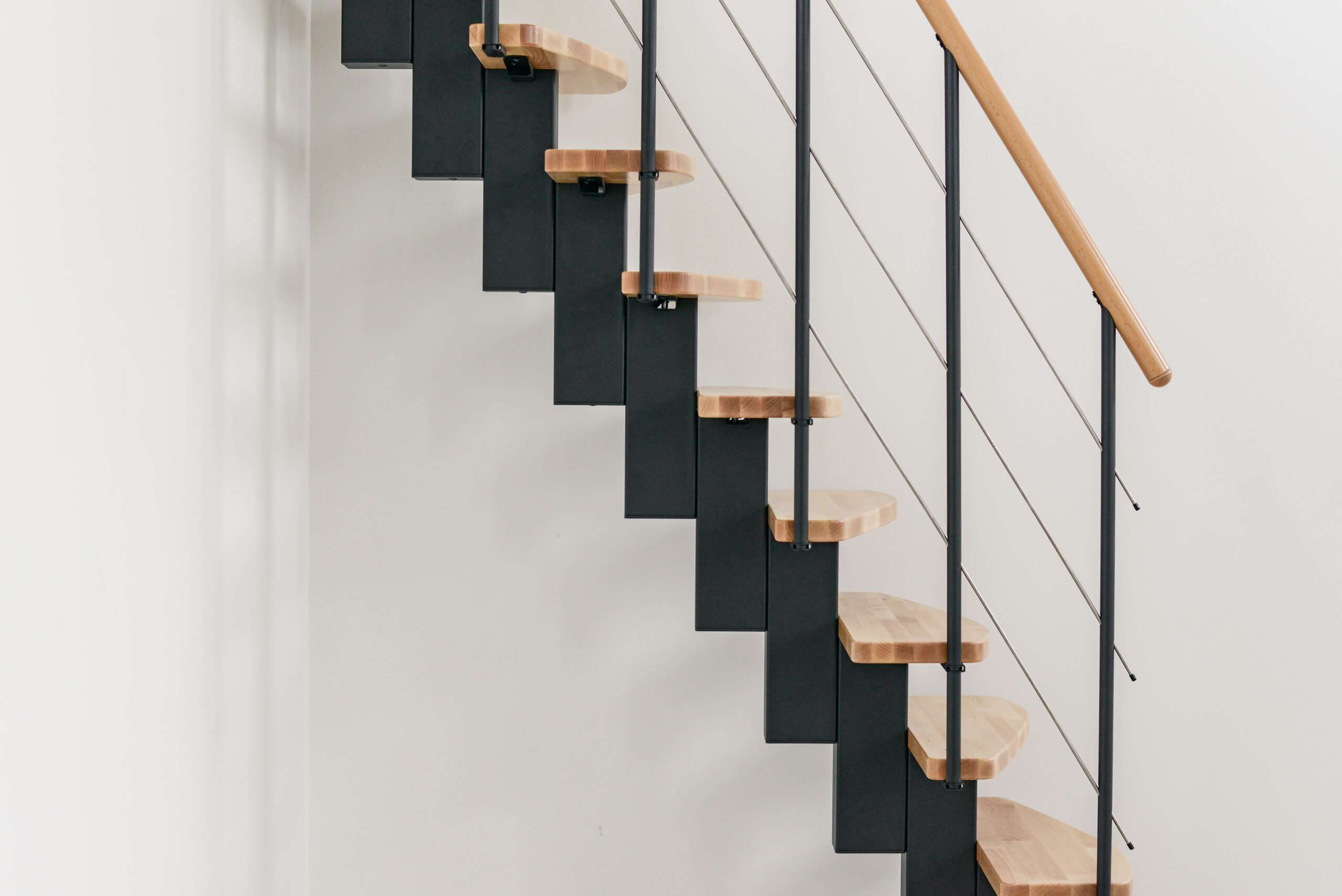 Das Holz der Quatro Raumspartreppe ist hochwertig lackiert – das sorgt für einen leichten Glanz und eine lange Lebensdauer. Mit der eigenen Abteilung für Pulverbeschichtung sorgt Minka für ein hochqualitatives Finish der Metallteile. Alle Materialien der Minka Treppen stammen aus Europa und zeichnen sich durch eine hohe Nachhaltigkeit aus.