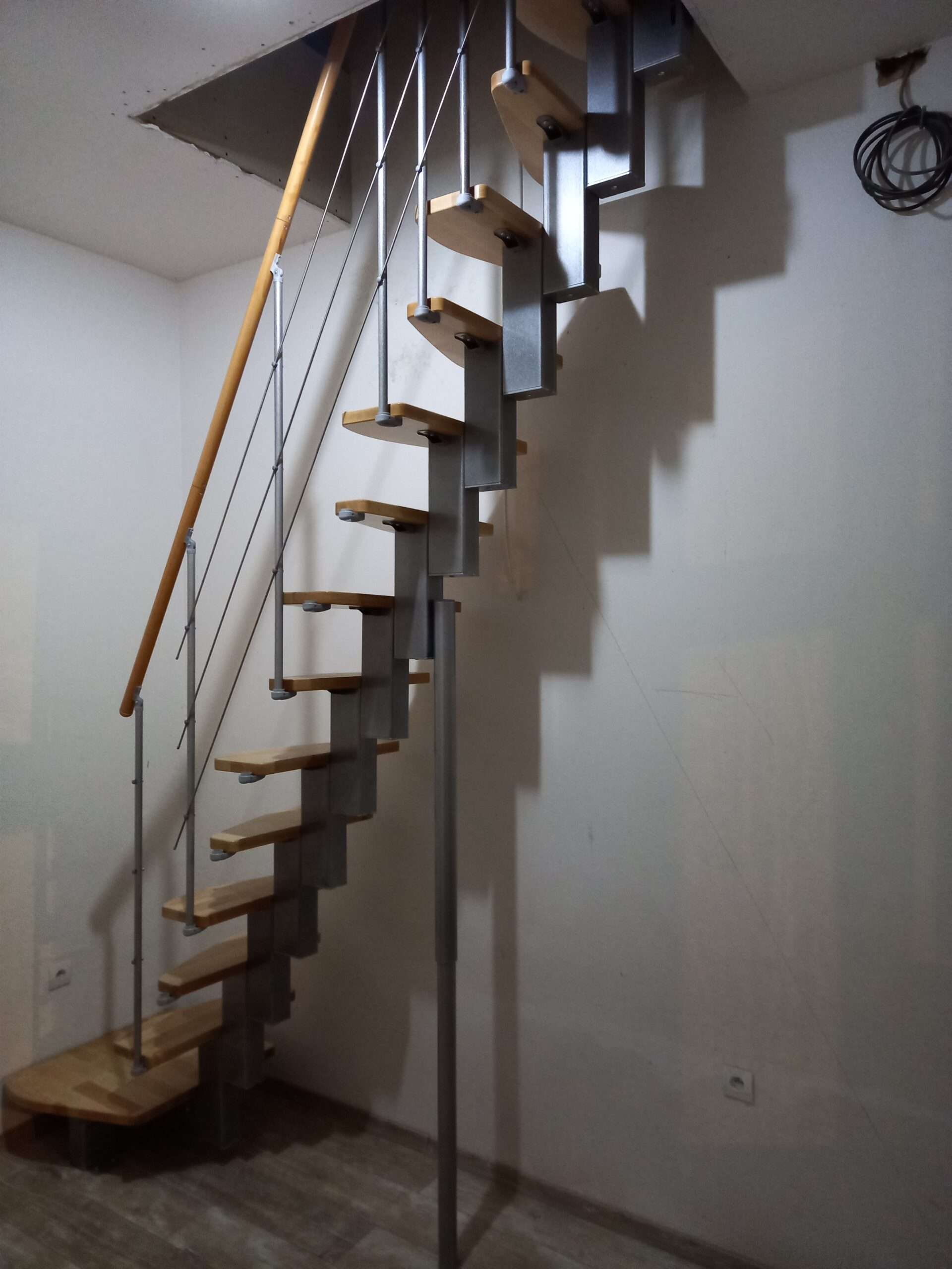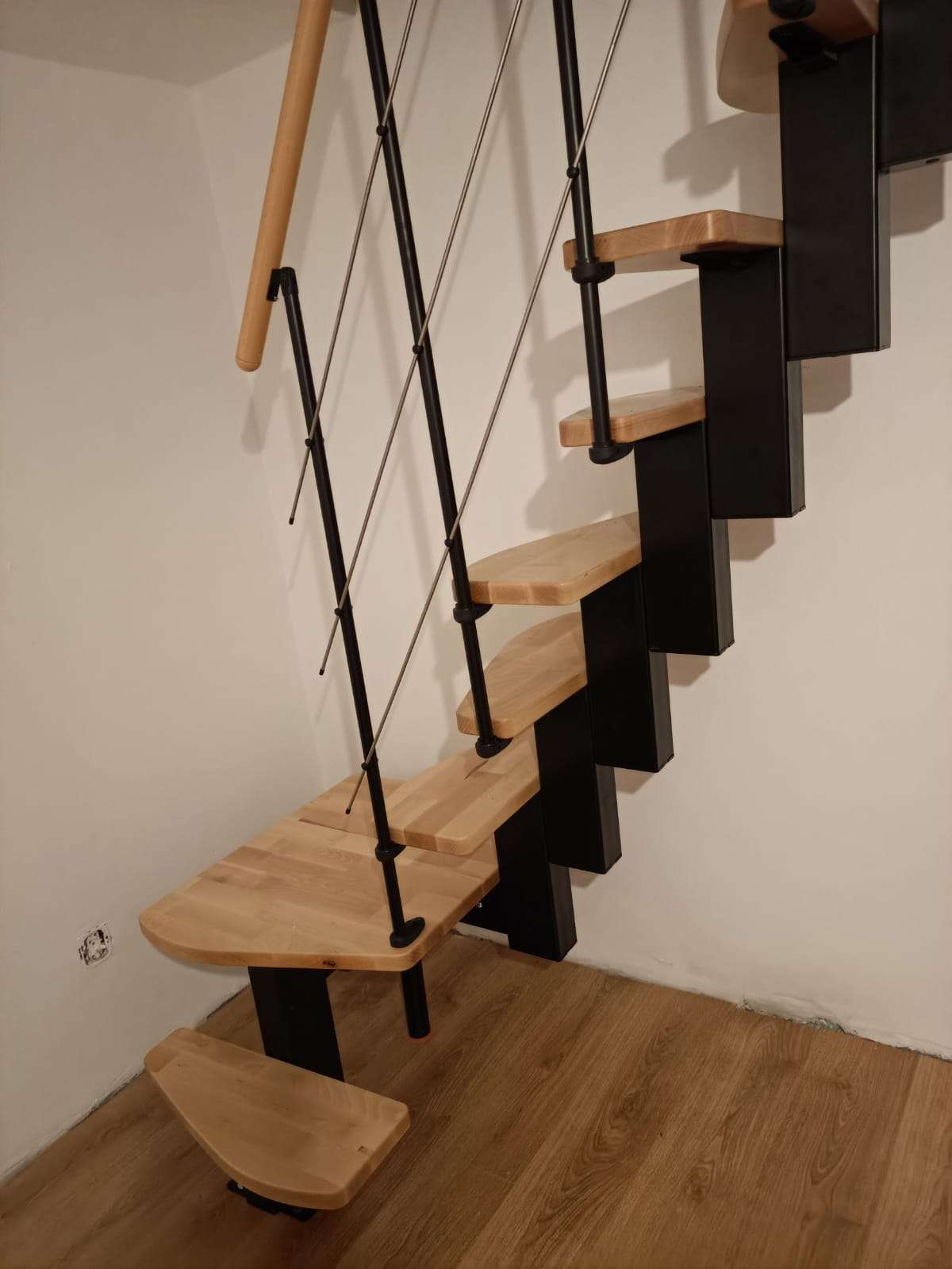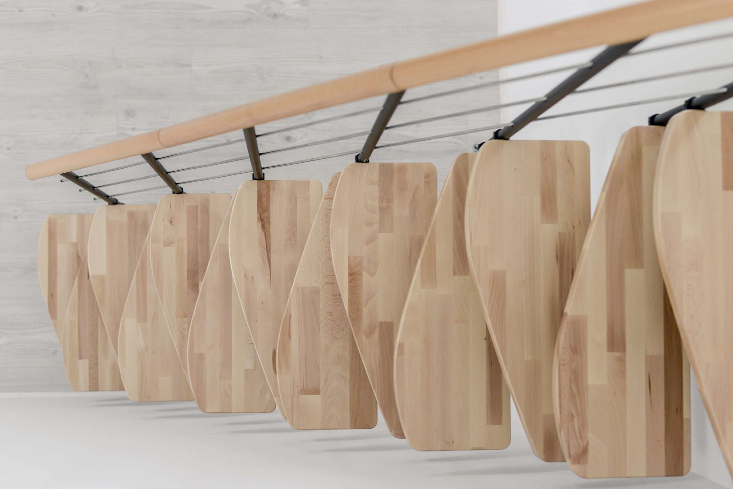 Das Holz der Quatro Raumspartreppe ist hochwertig lackiert – das sorgt für einen leichten Glanz und eine lange Lebensdauer. Mit der eigenen Abteilung für Pulverbeschichtung sorgt Minka für ein hochqualitatives Finish der Metallteile. Alle Materialien der Minka Treppen stammen aus Europa und zeichnen sich durch eine hohe Nachhaltigkeit aus.