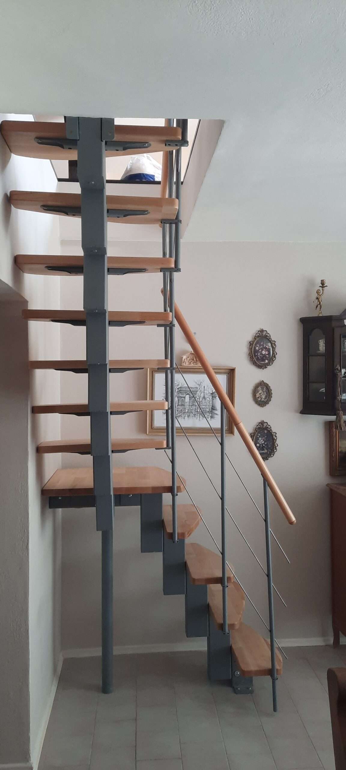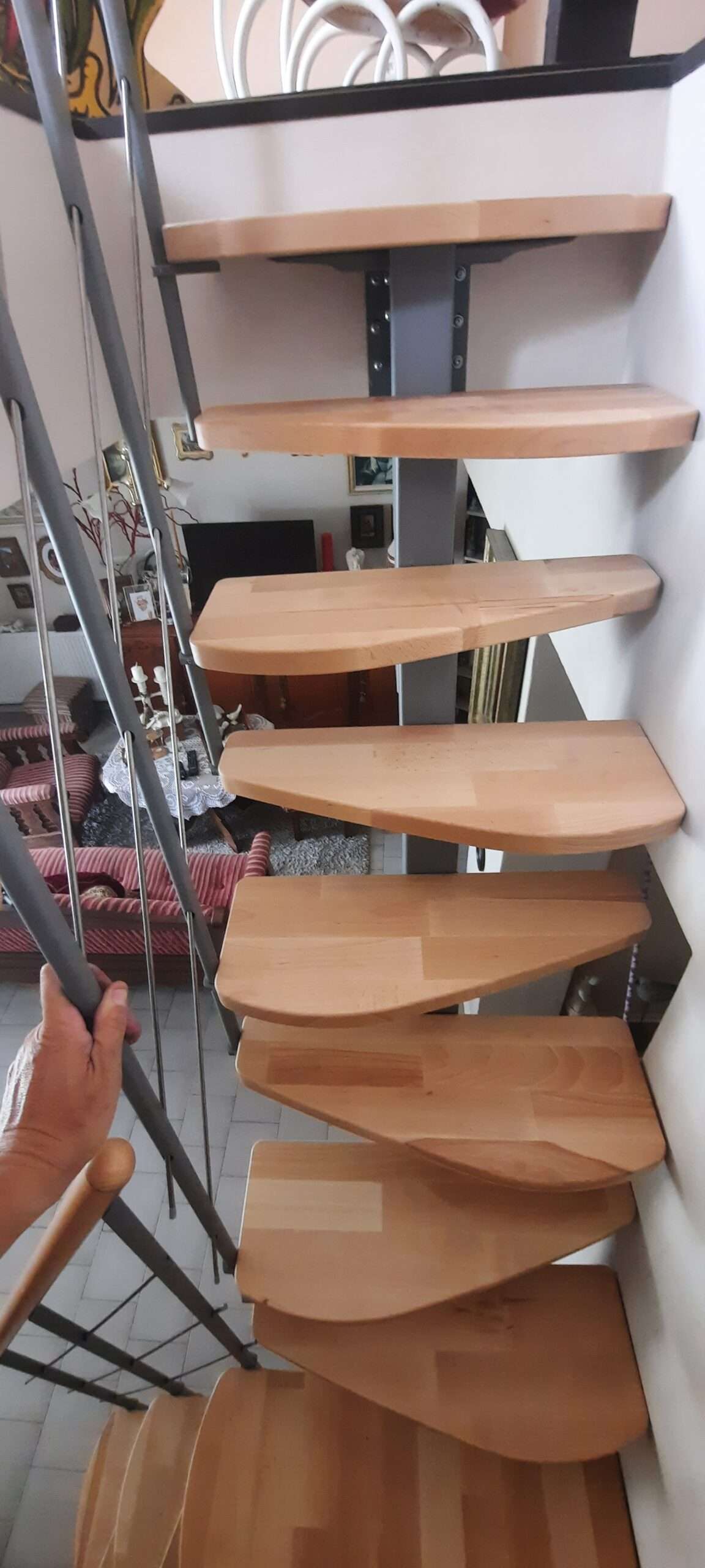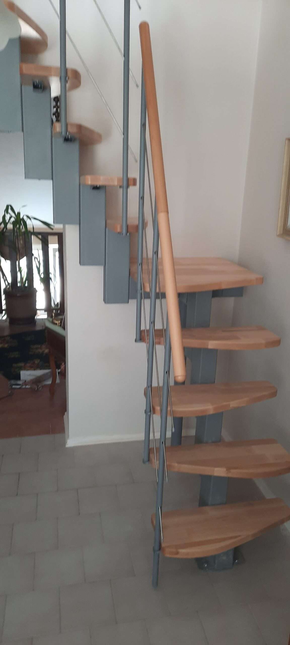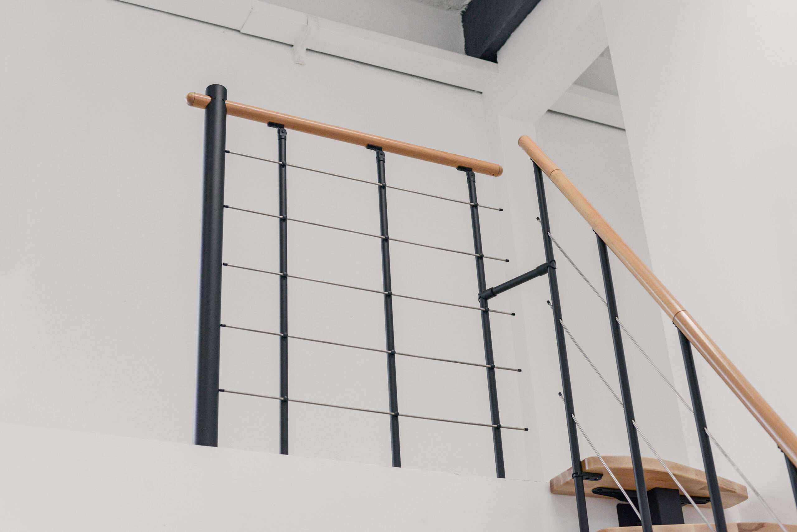 - Markante Metallteile vereint mit sanft geschwungenen Holzstufen
