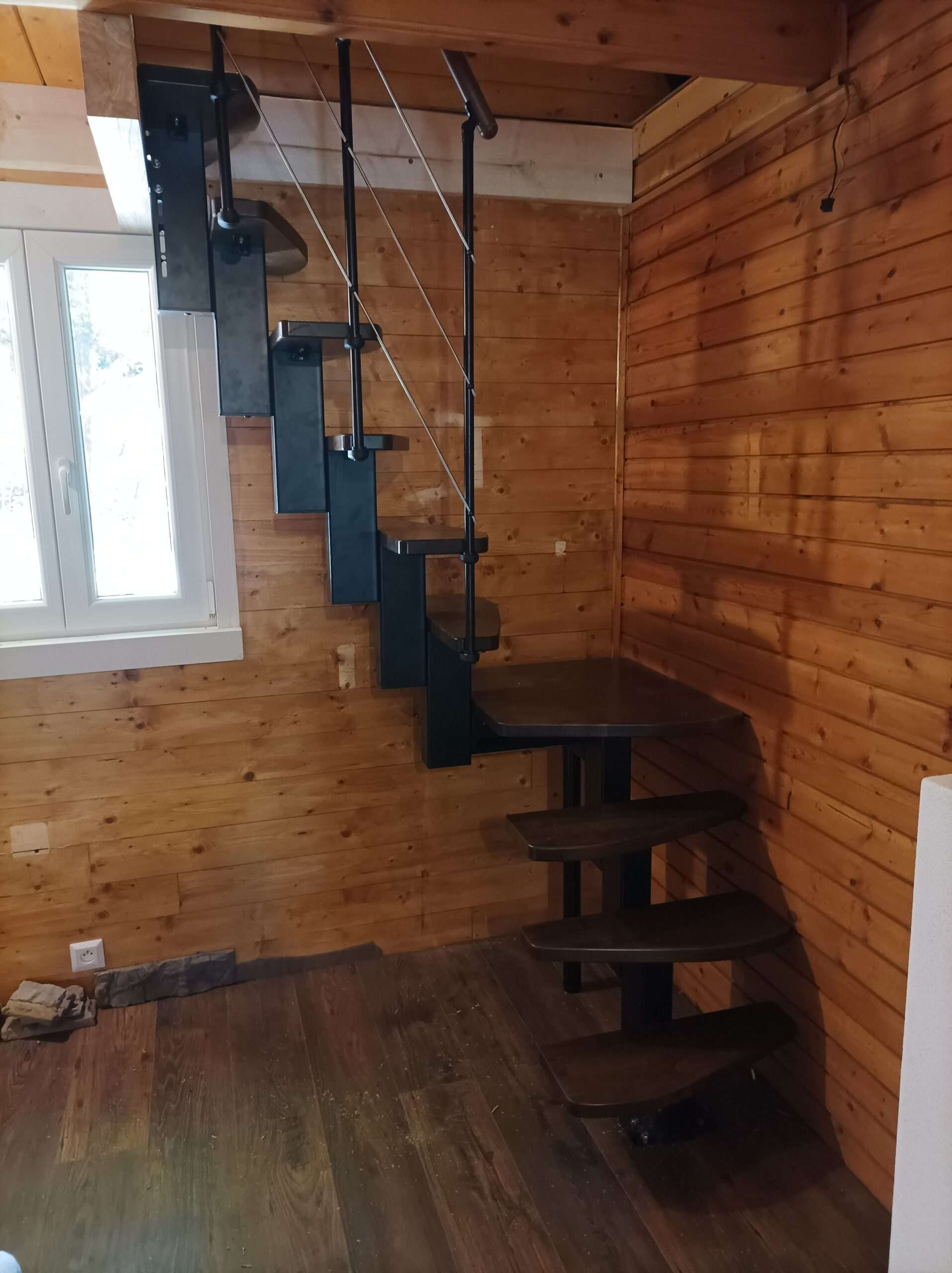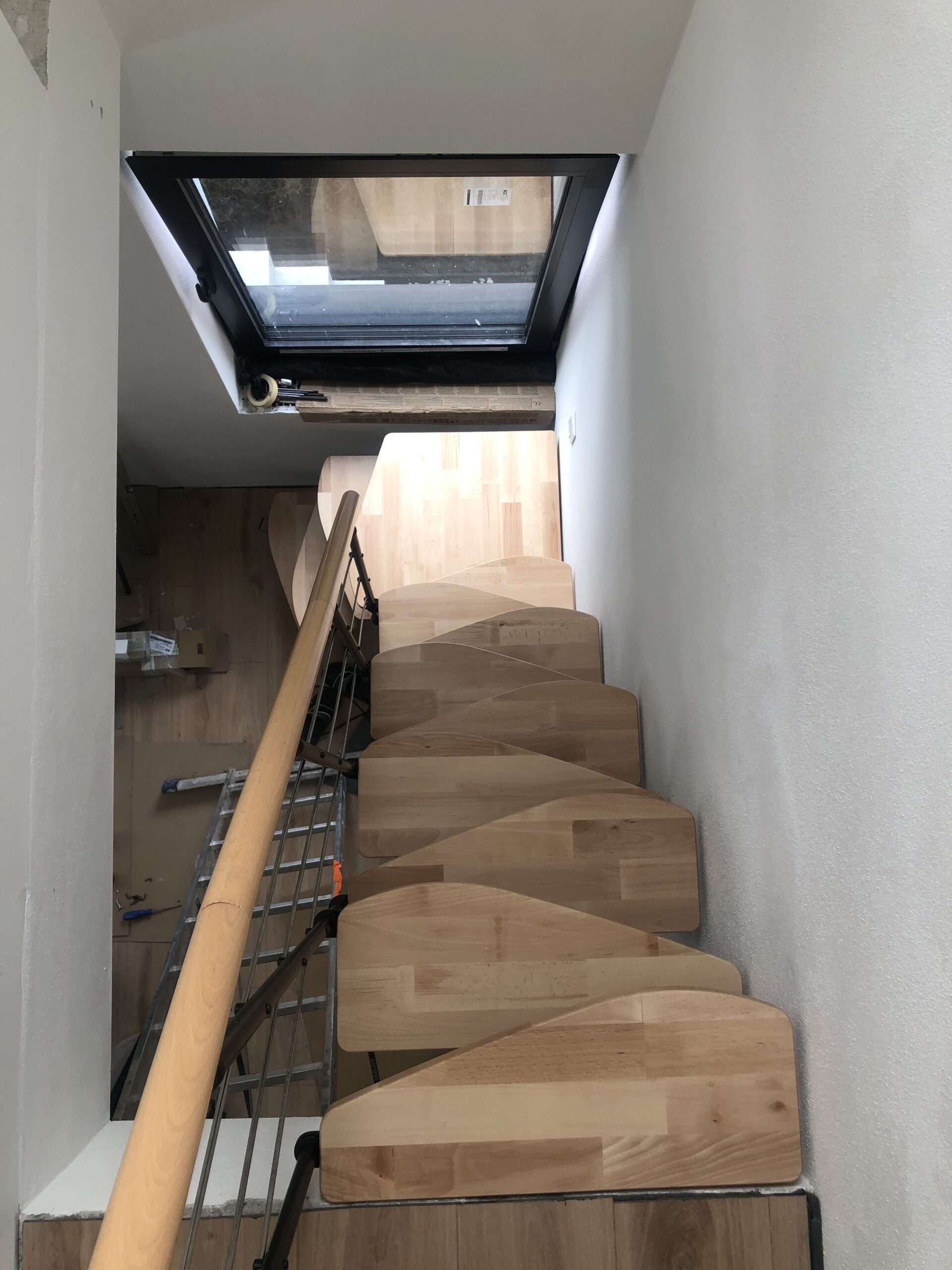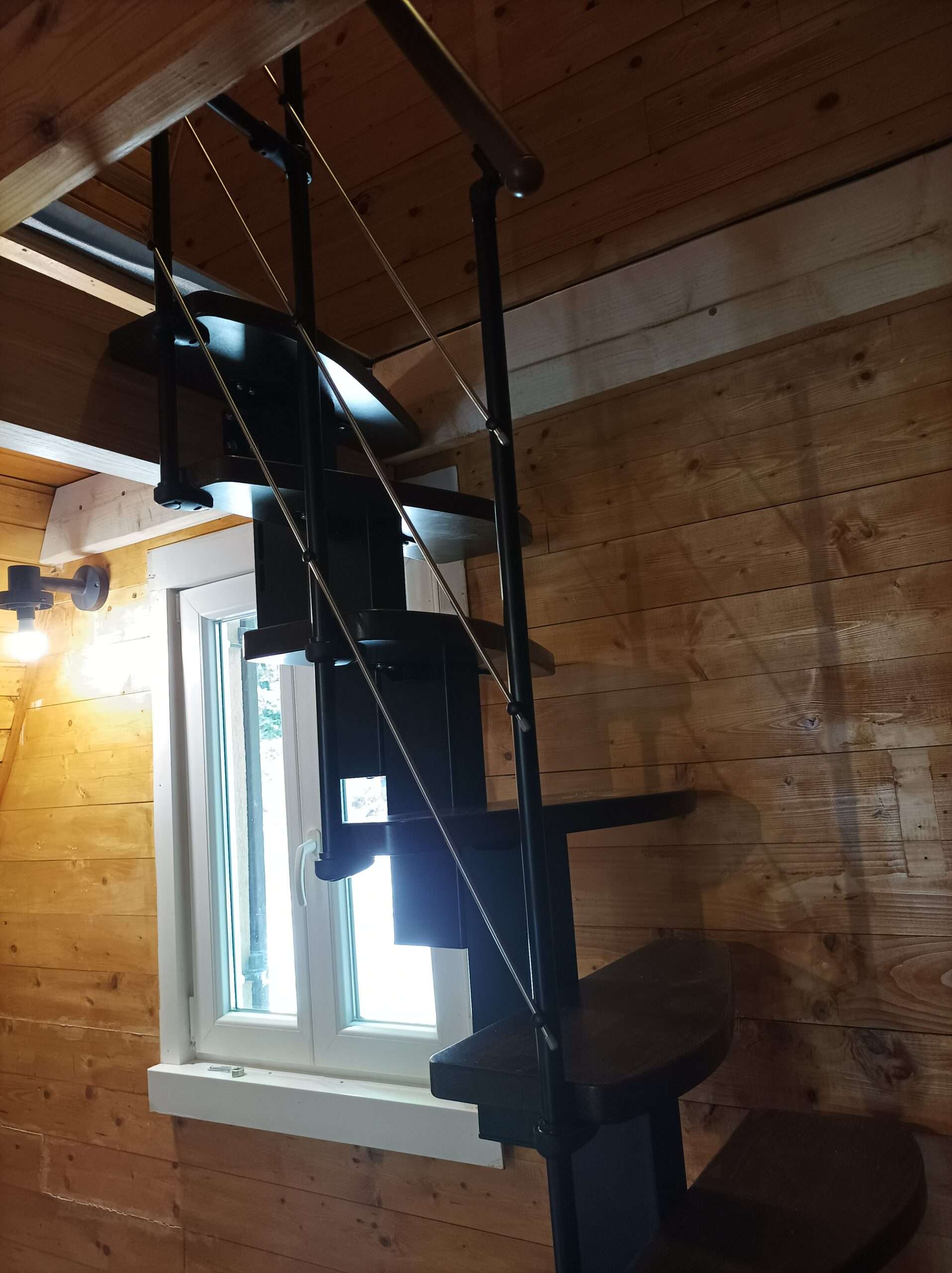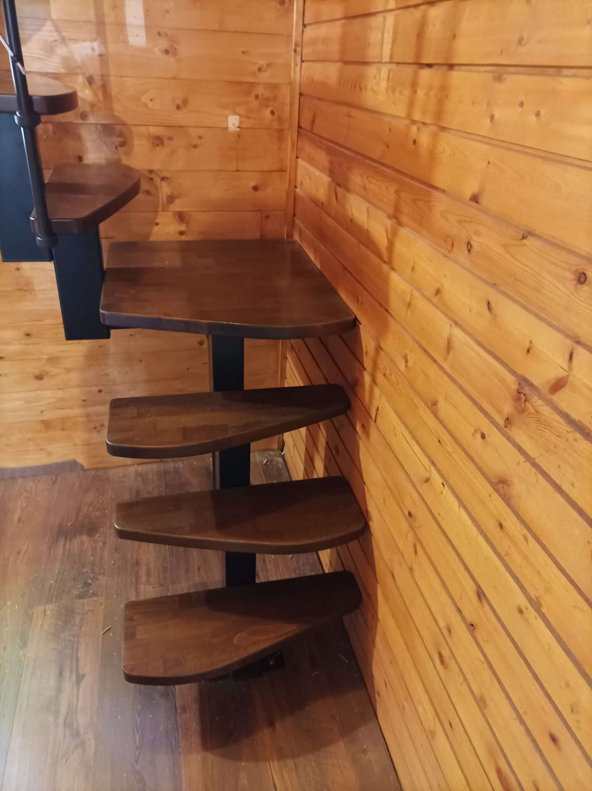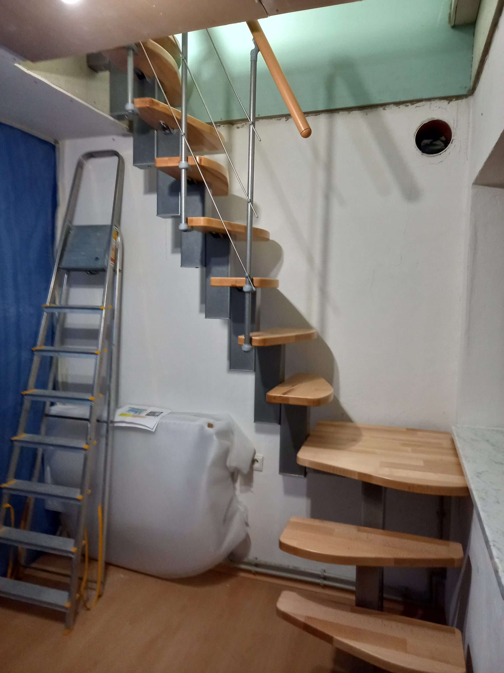 - Markante Metallteile vereint mit sanft geschwungenen Holzstufen