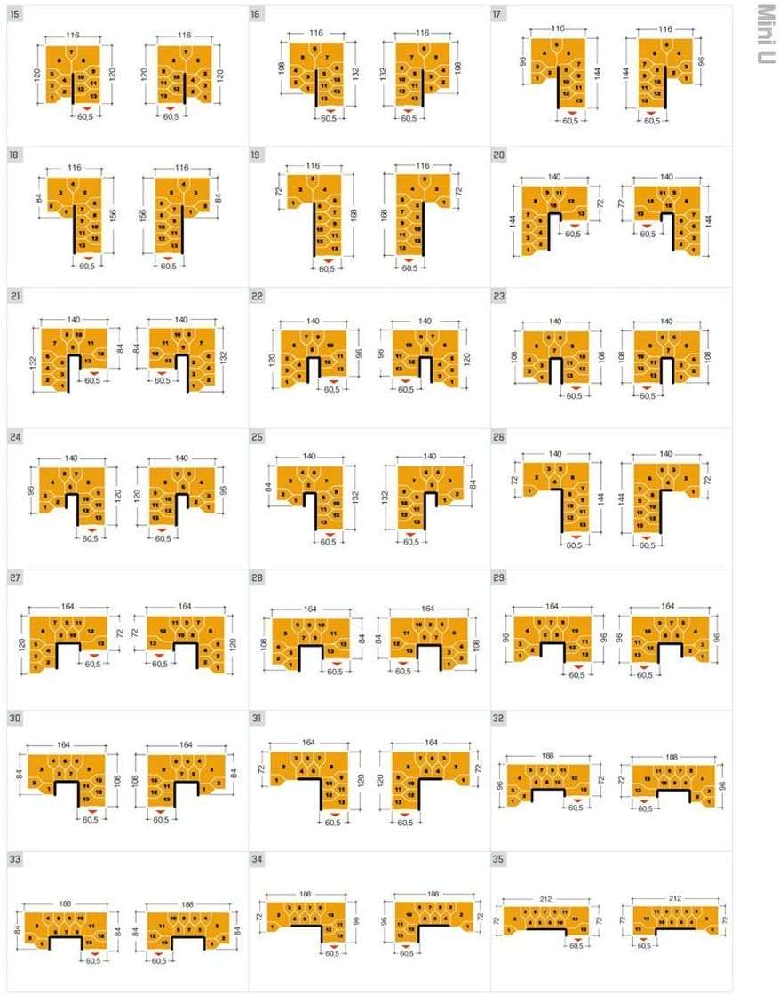 | Geschoßhöhe / Anzahl Stufen | 10 Stufen für 220 – 260 cm, 11 Stufen für 240 – 284 cm, 12 Stufen für 260 – 308 cm, 13 Stufen für 280 – 332 cm, 14 Stufen für 300 – 356 cm, 9 Stufen für 200 – 236 cm |