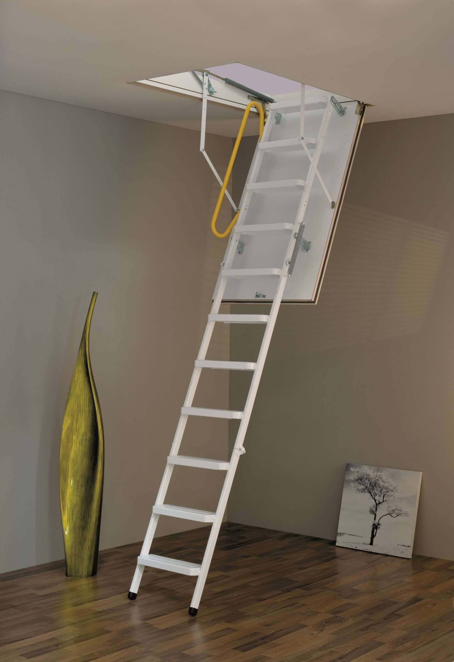 - Hochwertige Bodentreppe aus weiß pulverbeschichtetem Metall