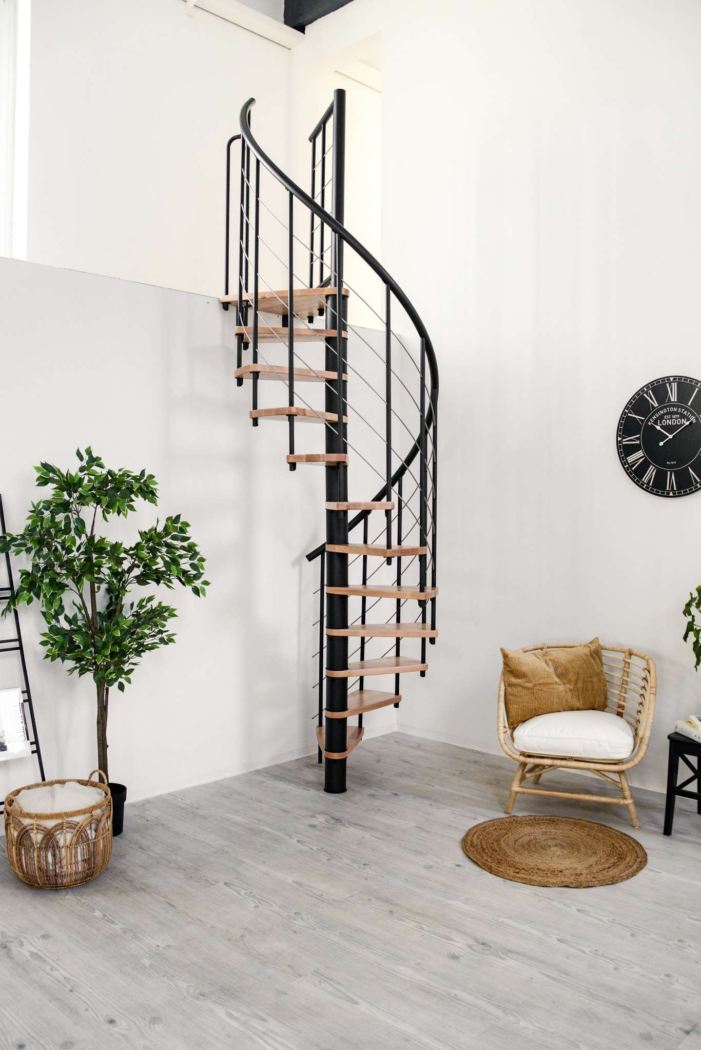 Die Spindeltreppe Venezia Smart bringt das leichte italienische Flair direkt zu Ihnen nach Hause. Die Kombination aus flachen Holzstufen und geschwungenen Untergurten lässt die Treppe dynamisch und modern wirken. Dank der großen Auswahl an Holzarten und Metallfarben ergänzt die Venezia Smart verschiedenste Einrichtungsstile perfekt. Durch den Handlauf aus PVC ist die Venezia Smart die ideale Wahl für alle, die Wert auf eine angenehme Haptik und einen etwas günstigeren Preis legen.